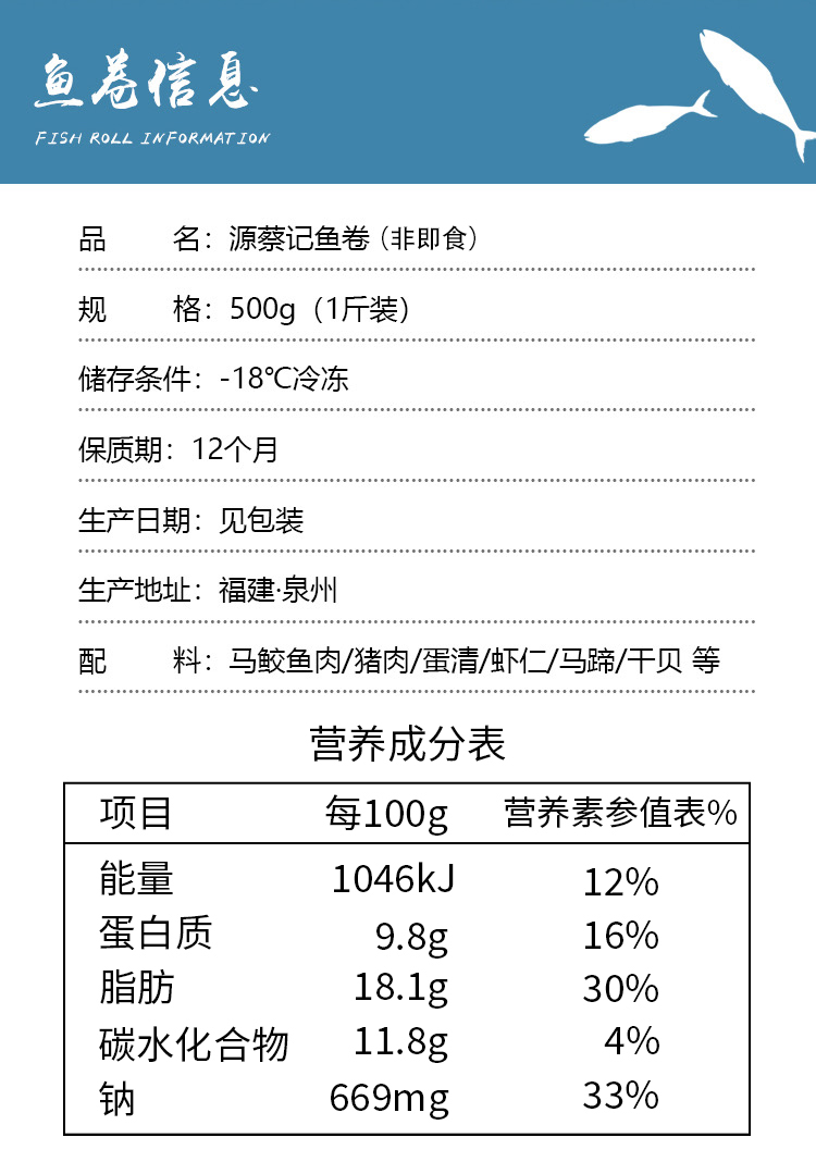源蔡记崇武鱼卷1斤3条装*2包
