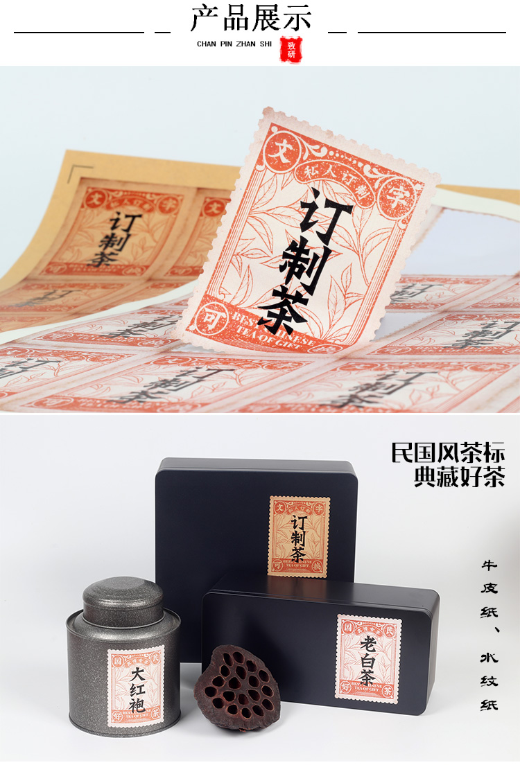 打印定制广告logo贴纸专业茶叶不干胶标签设计水纹贴纸二维码包邮
