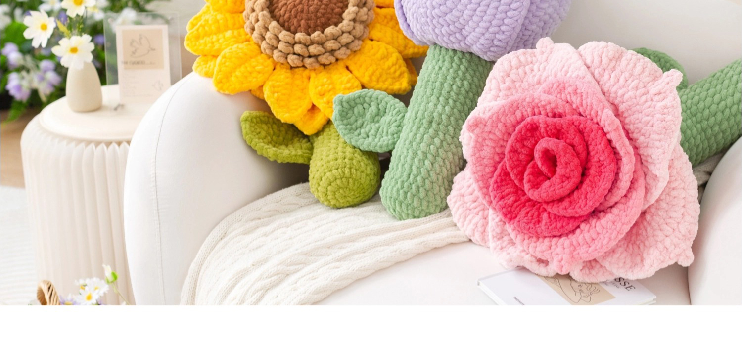 苏苏姐家花朵抱枕手工DIY编织钩针毛线团自制抱枕材料包预