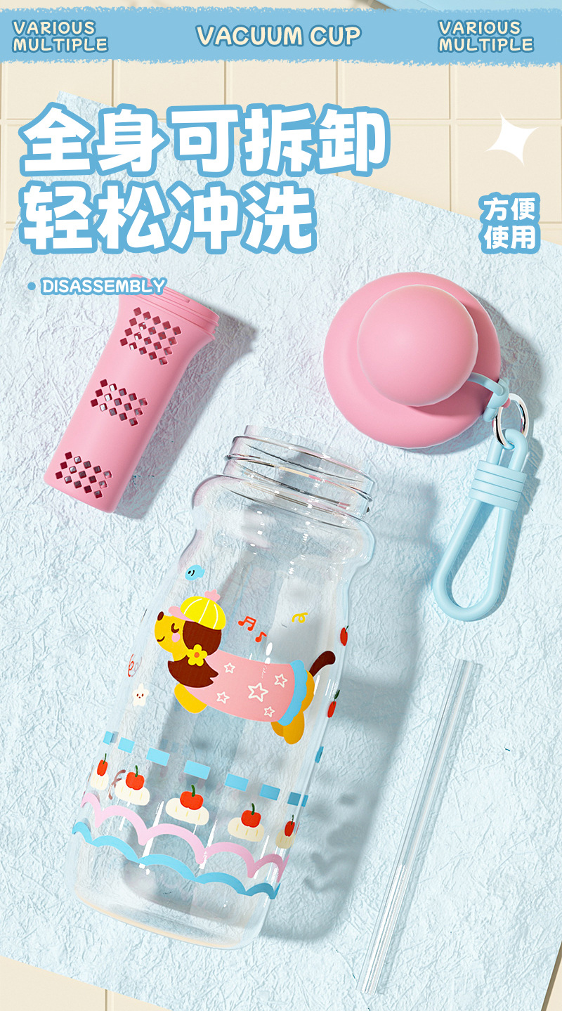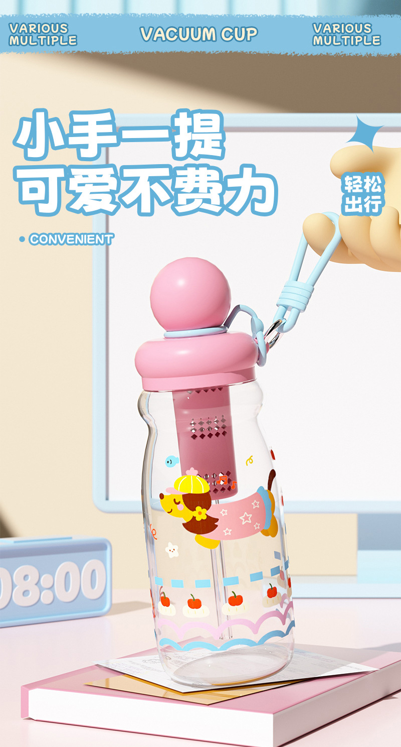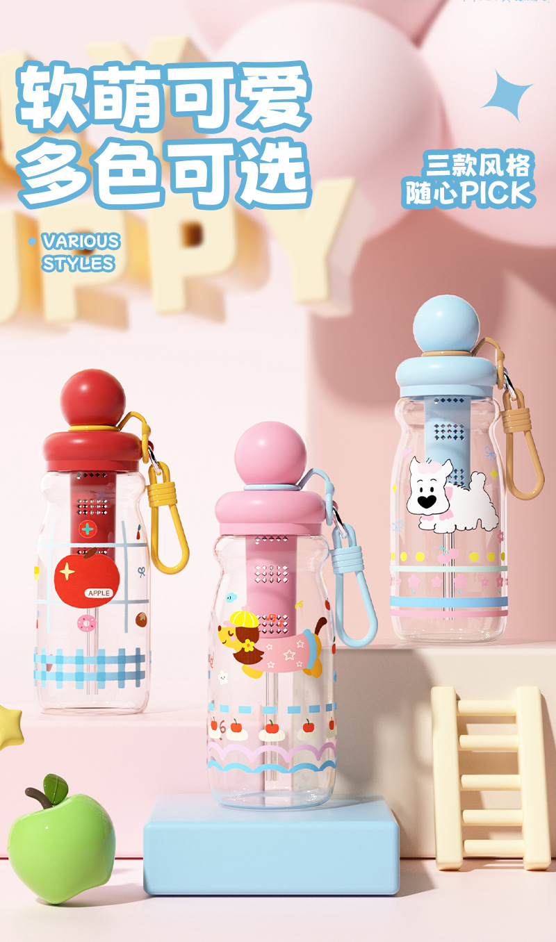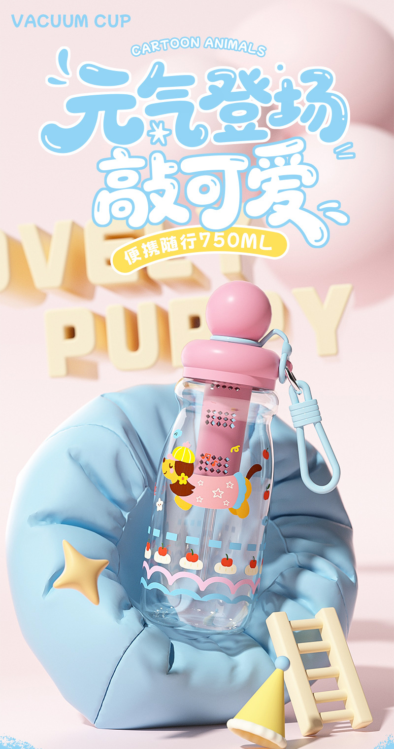 可爱卡通塑料杯萌宠学生浮球吸管杯创意男女生高颜值户外运动水壶