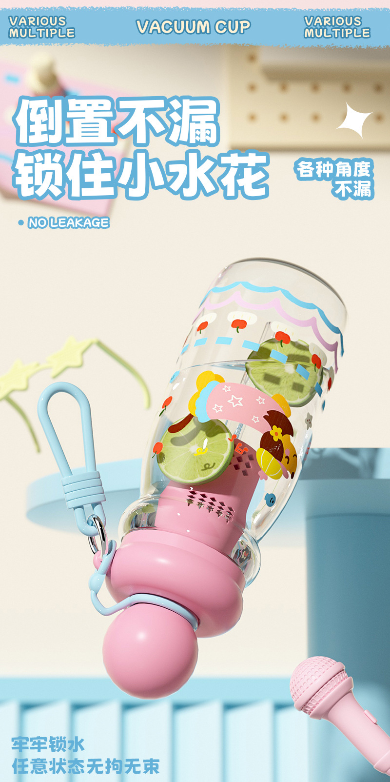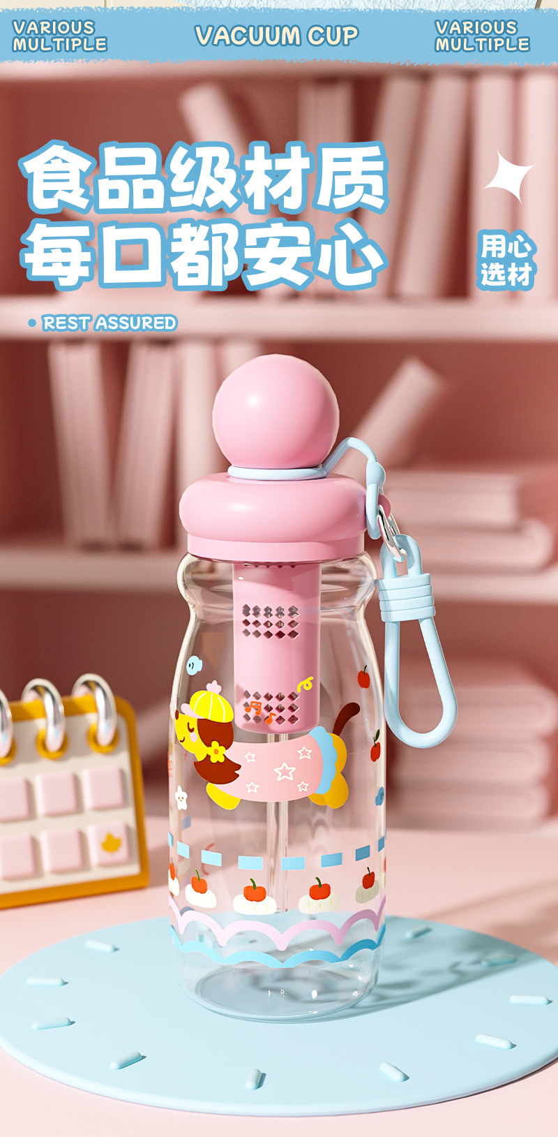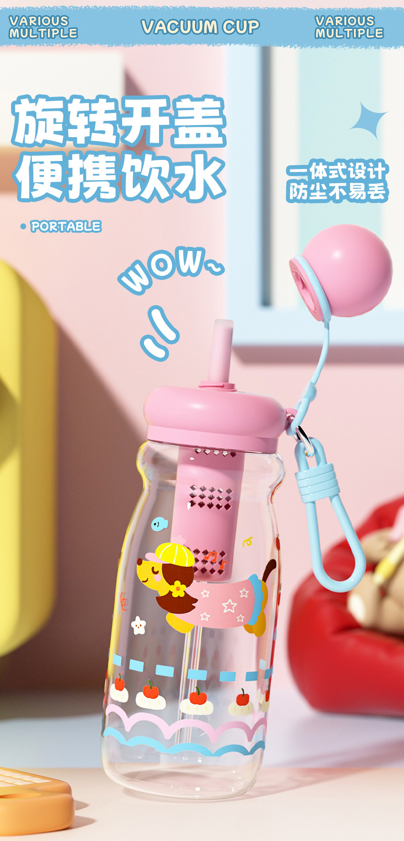 可爱卡通塑料杯萌宠学生浮球吸管杯创意男女生高颜值户外运动水壶
