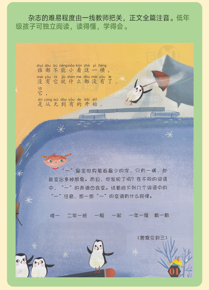 杂志以孩子喜欢的故事、漫画为主要呈现形式,并从“部编本”教材出发,将字、词、句、篇等知识点藏于其中,使孩子在快乐阅读中增长知识,提高成绩。