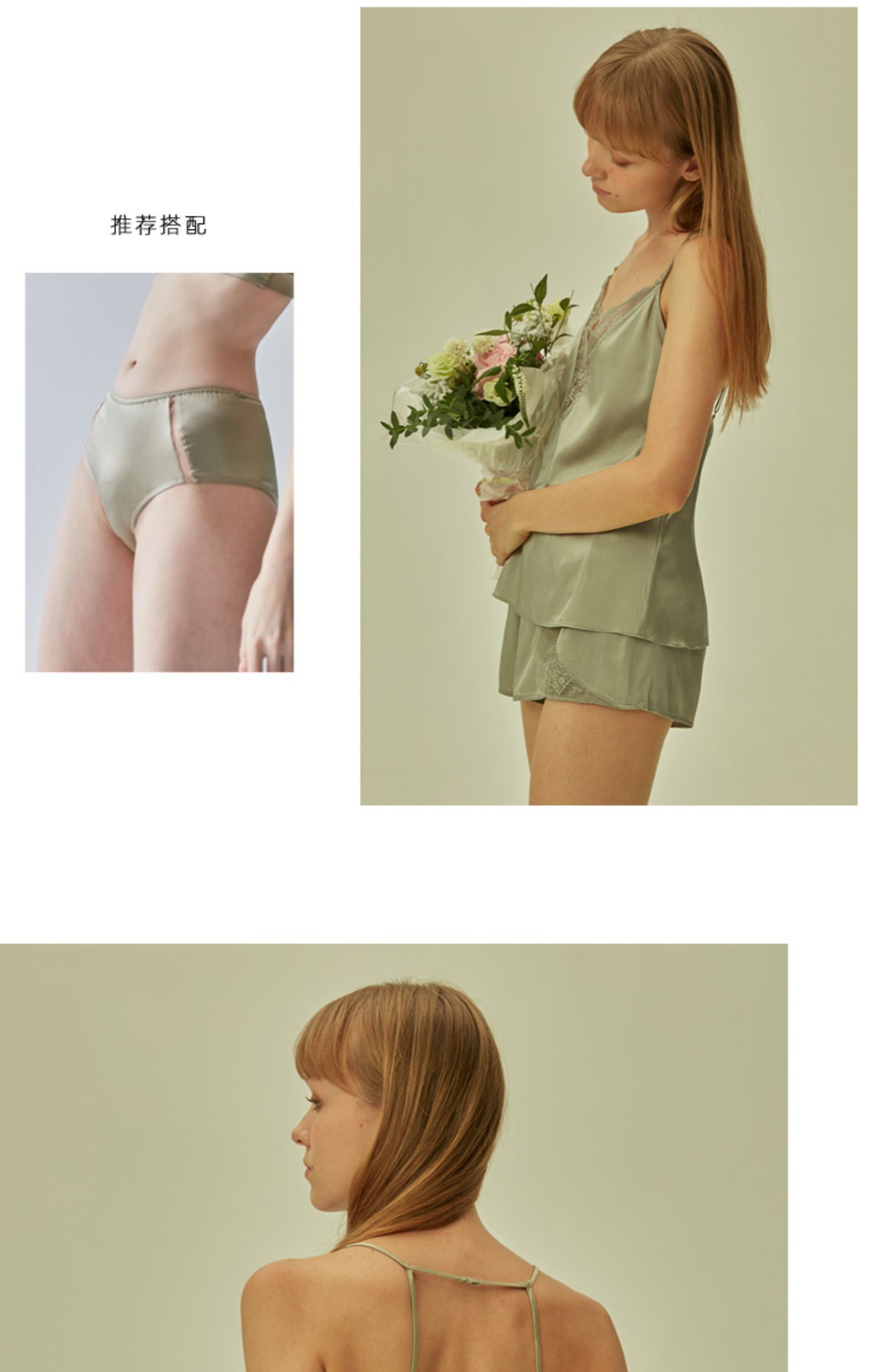 丝绸睡衣性感蕾丝吊带短裤套装SANGLUO桑罗深V露背桑蚕丝家居服女
