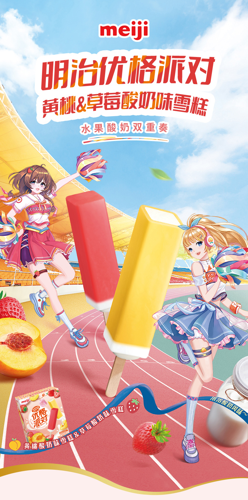 明治黄桃酸奶&草莓酸奶雪糕迷你冰棒490g/盒冷饮雪糕批发冷饮雪糕批发