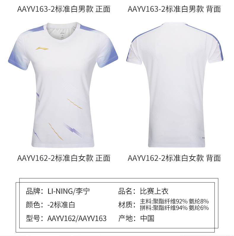 李宁羽毛球服男女款AAYV162 AAYV163速干透气舒适短袖大赛服