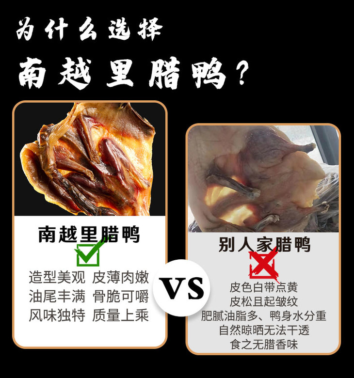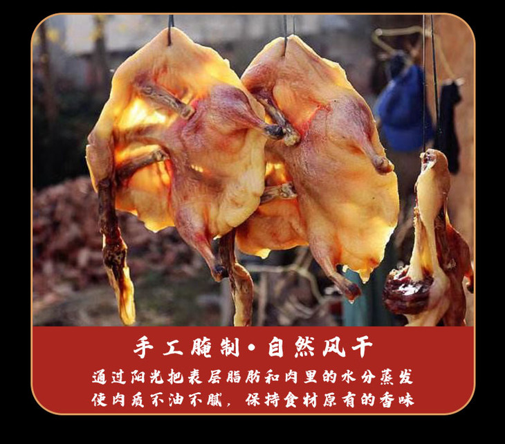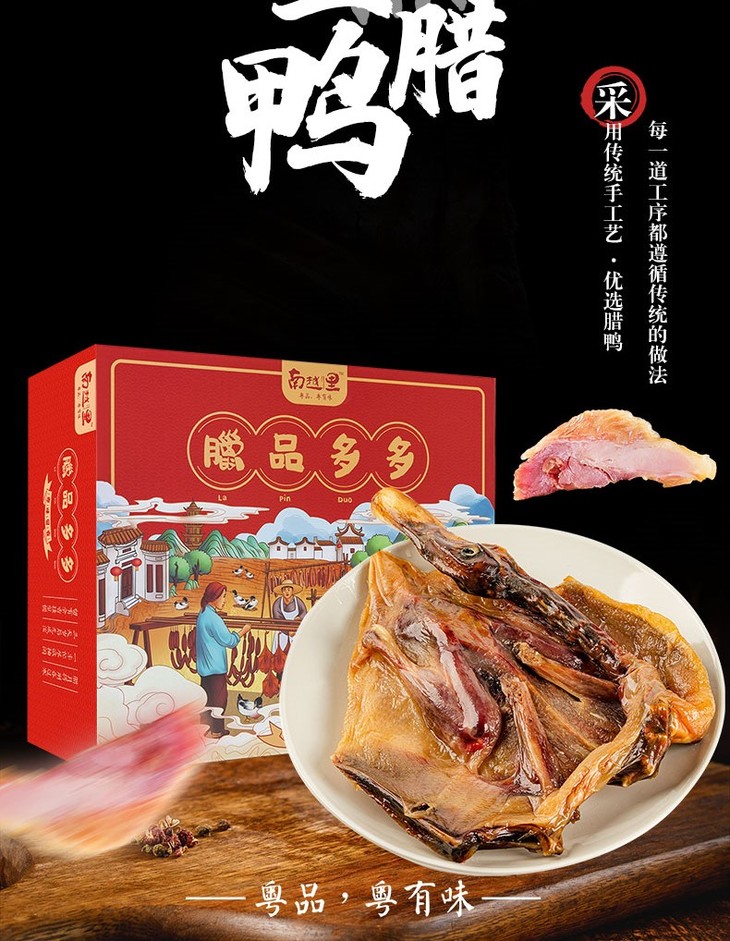 广式腊鸭减盐版(咸味)| 散养养殖120天麻鸭,传承技术腌制,腊制出的鸭腿透明发光,颜色艳丽,黄里透红,腊味醇厚。⭐️中通/圆通