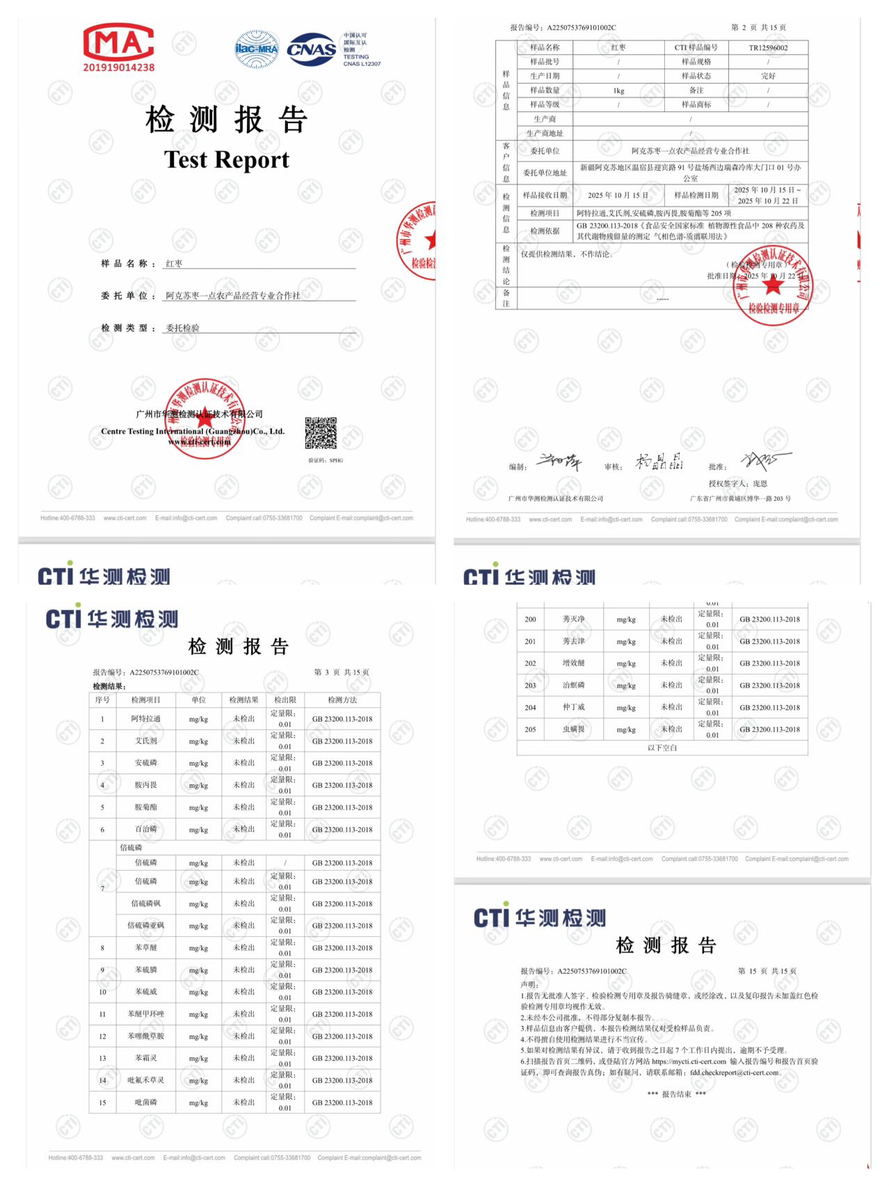 2、我们的灰枣连续5年通过欧盟检测标准0农残,品种为新疆灰枣。