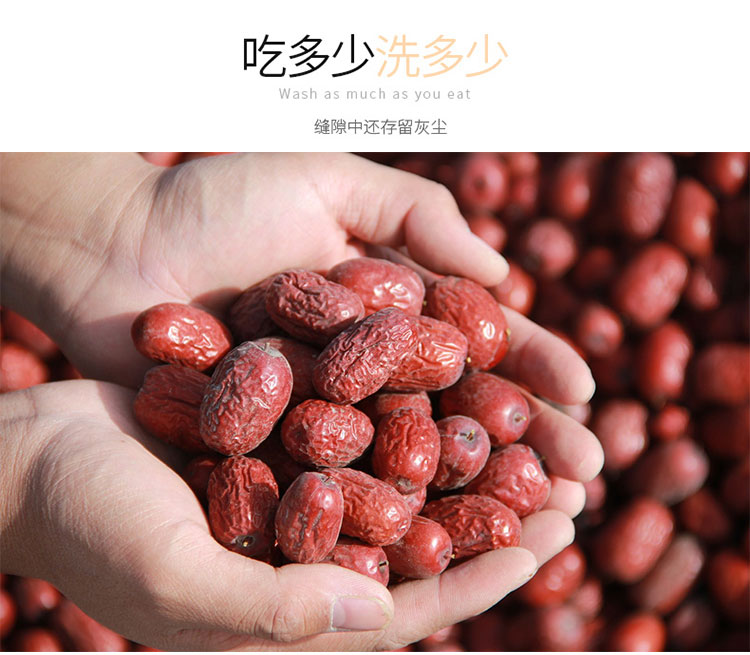 【净含量】尝鲜装3斤送半斤;一斤约110颗中大枣