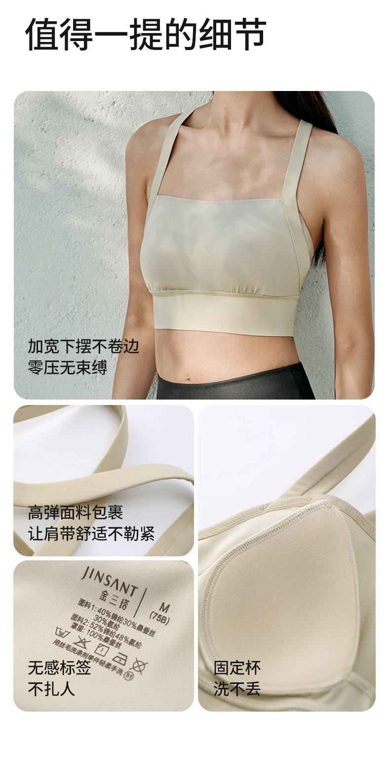 会呼吸轻运动】桑蚕丝弹力上衣透气文胸女抹胸运动健身内衣金三塔 NZFFB303