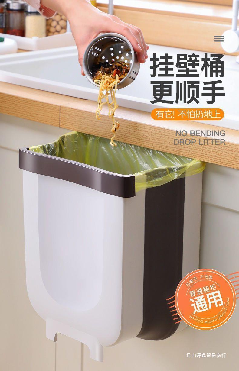 【有它!不怕扔地上】厨房垃圾桶家用挂式,折叠柜门悬挂客厅卧室创意车载壁挂式大号纸篓,减少占用空间,保持环境整洁lm