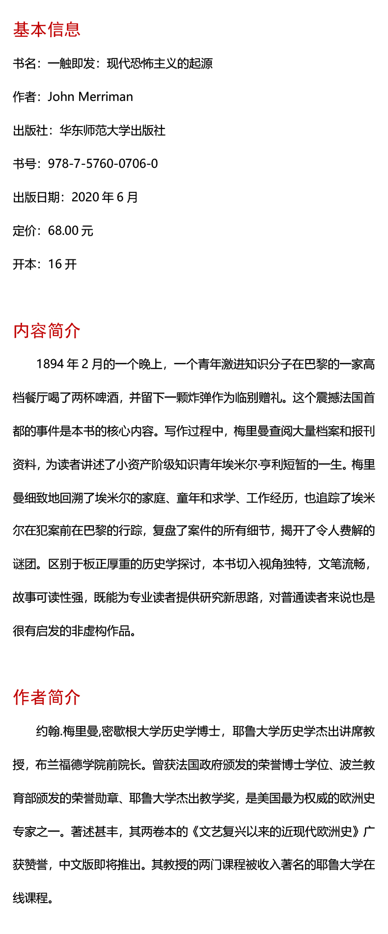一触即发 现代恐怖主义的起源 梅里曼 法国美好时代的工人阶级激进主义研究 历史研究 正版 华东师范大学出版社