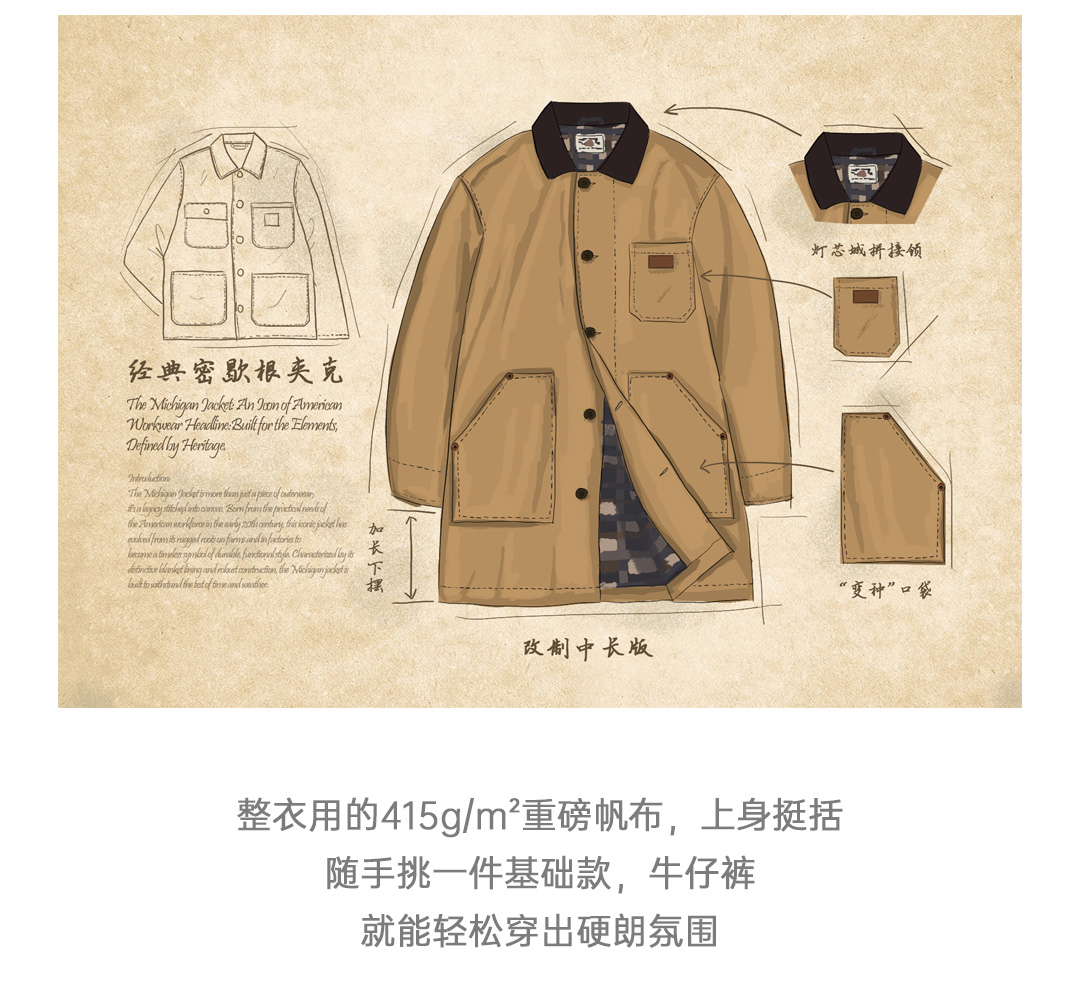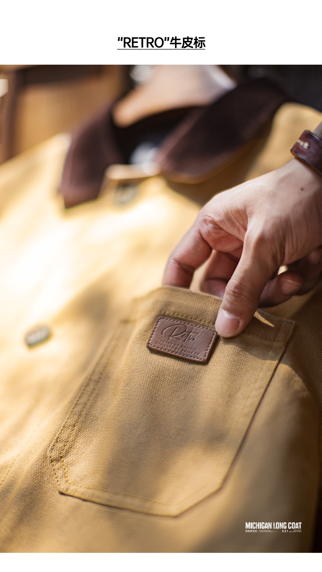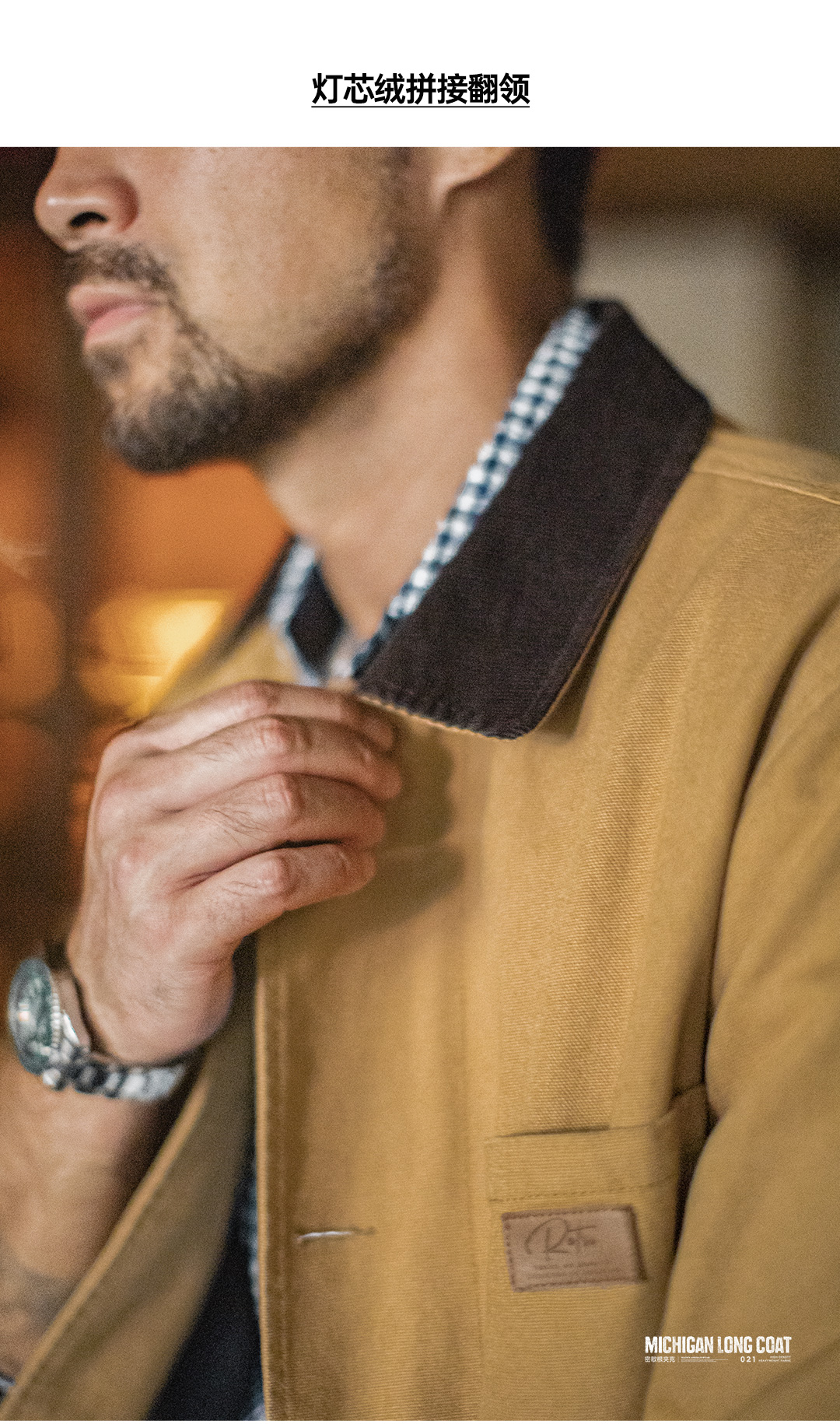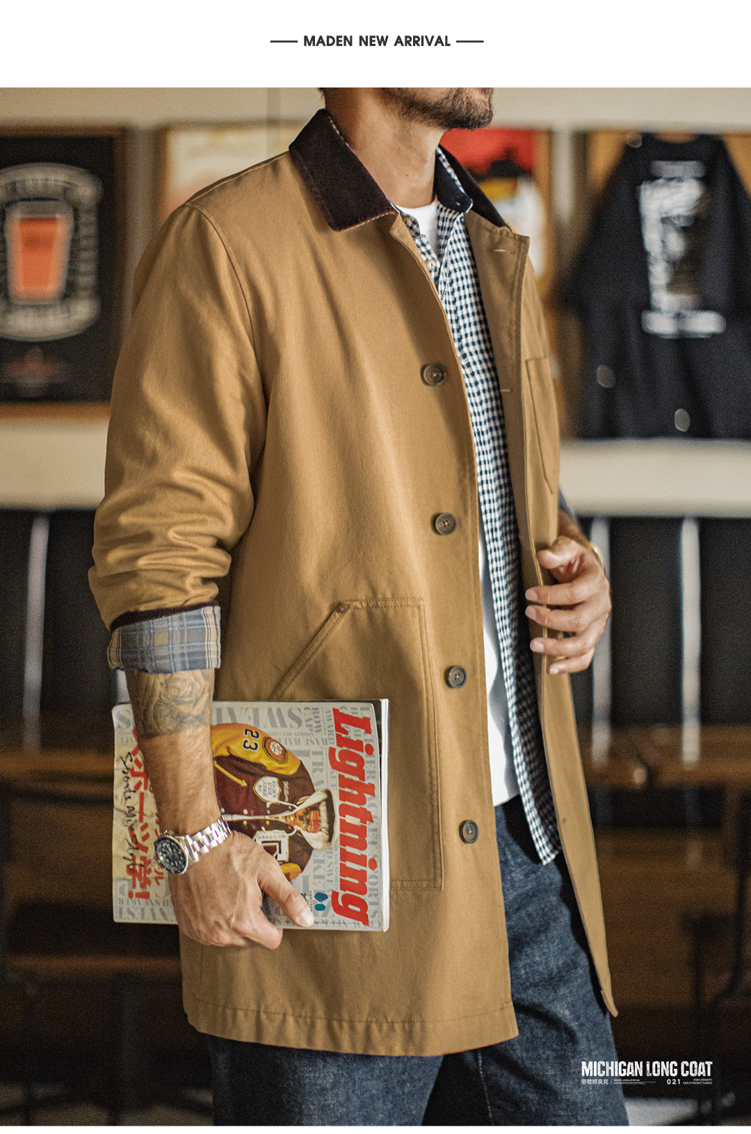 马登工装美式复古密歇根风衣卡其色巴恩风中长款廓形夹克外套男秋