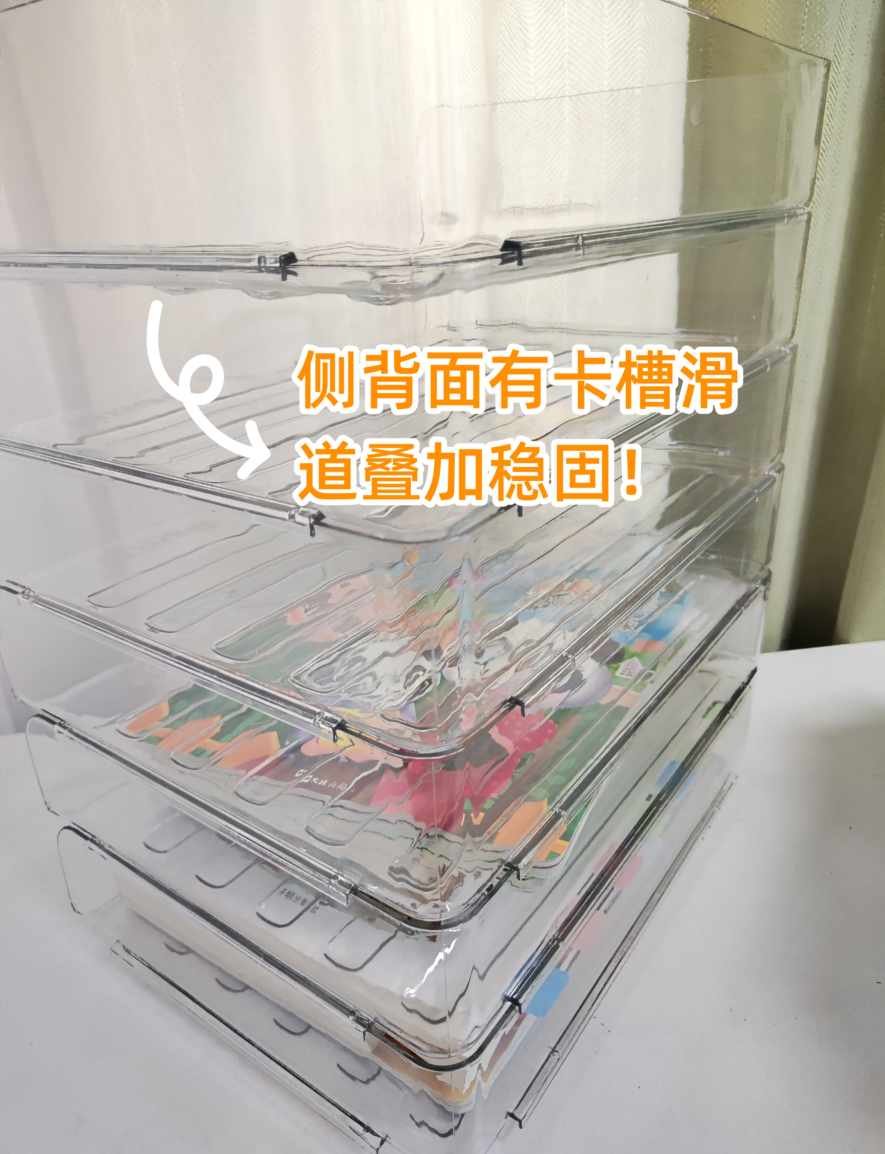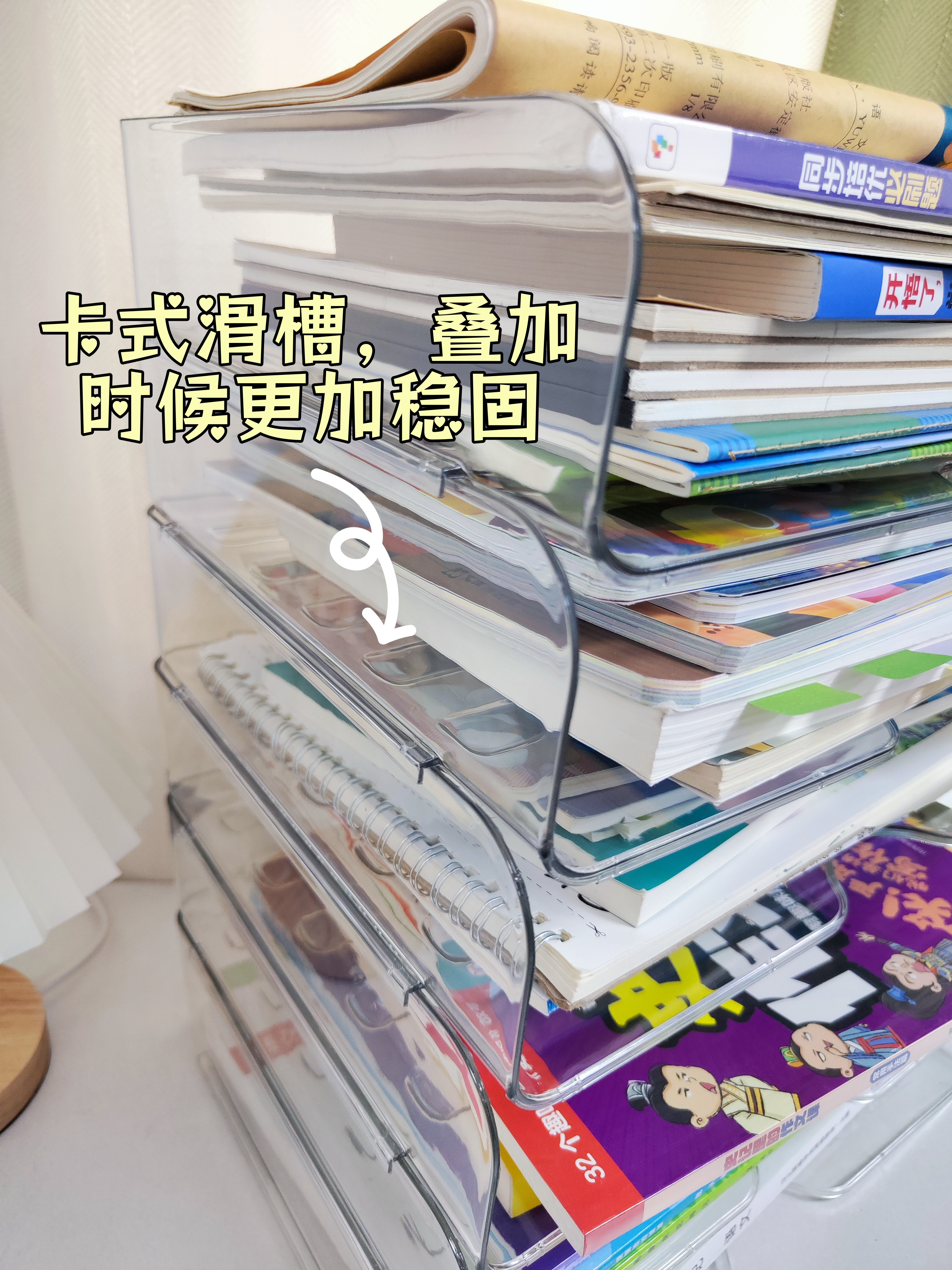✅我们的书架:卡式滑槽,叠加时候更加稳固,可独立也可以上下叠加,想要几层都ok!而且两侧背面有卡槽滑道叠加稳固!拿取也特别方便!
