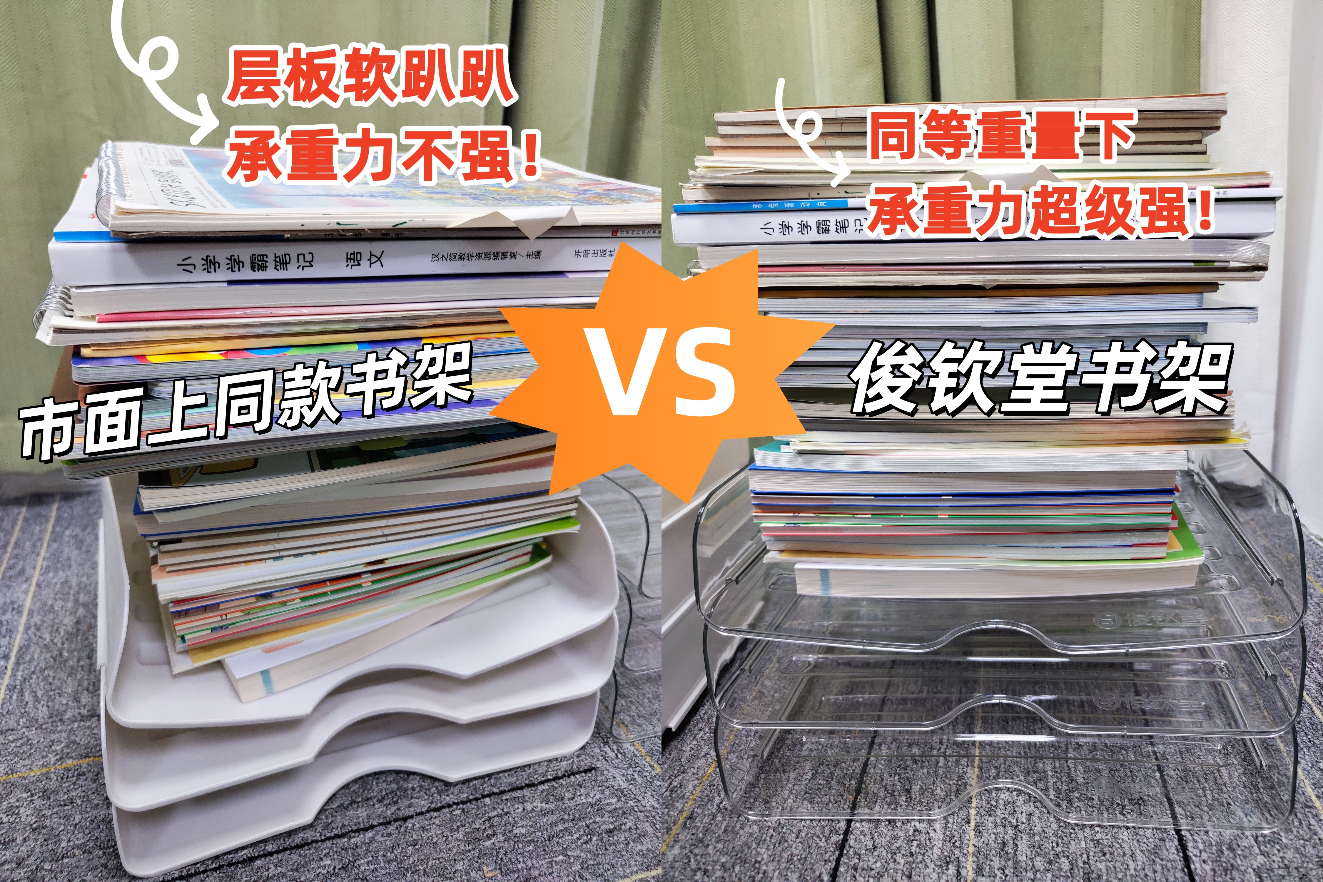 ❌市面上同款书架:普通材质,脆裂塌陷,摞高容易夸,含双酚A/荧光剂!