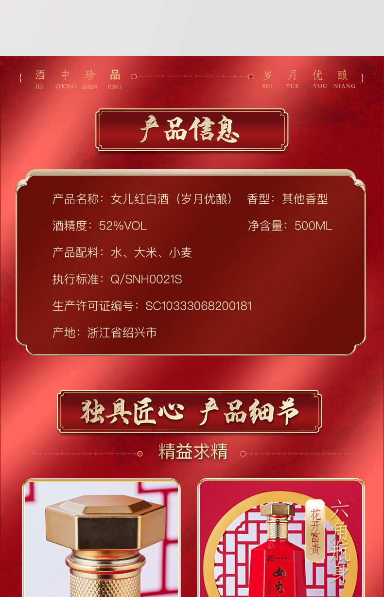 中华佬字号女儿红纯粮白酒52度礼盒装岁月优酿