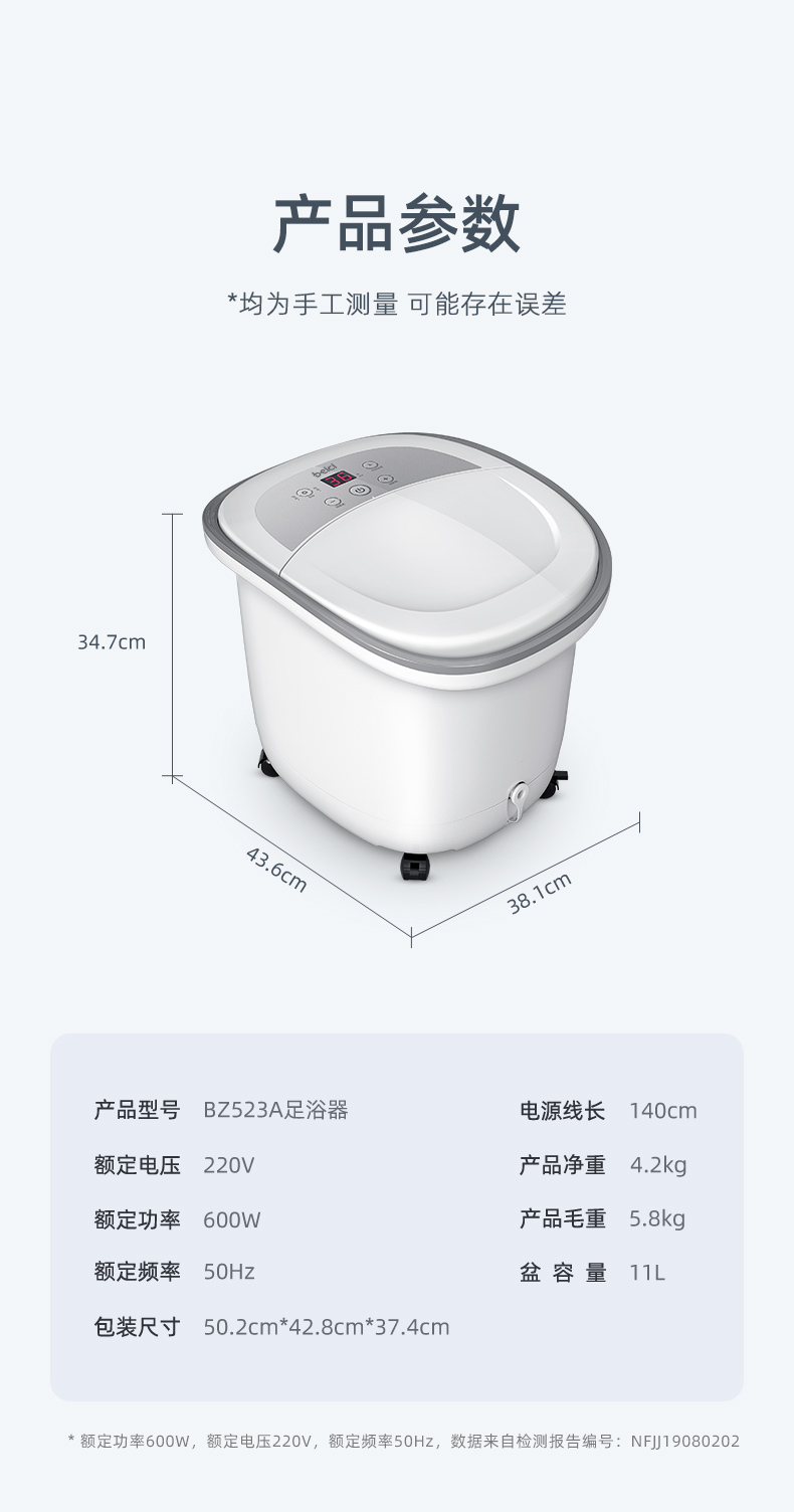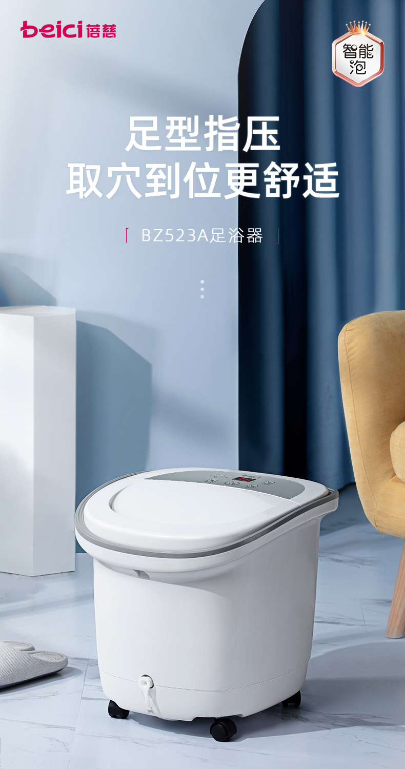 蓓慈小白Pro BZ523A全自动足浴器泡脚桶洗脚盆全自动加热恒温按摩家用