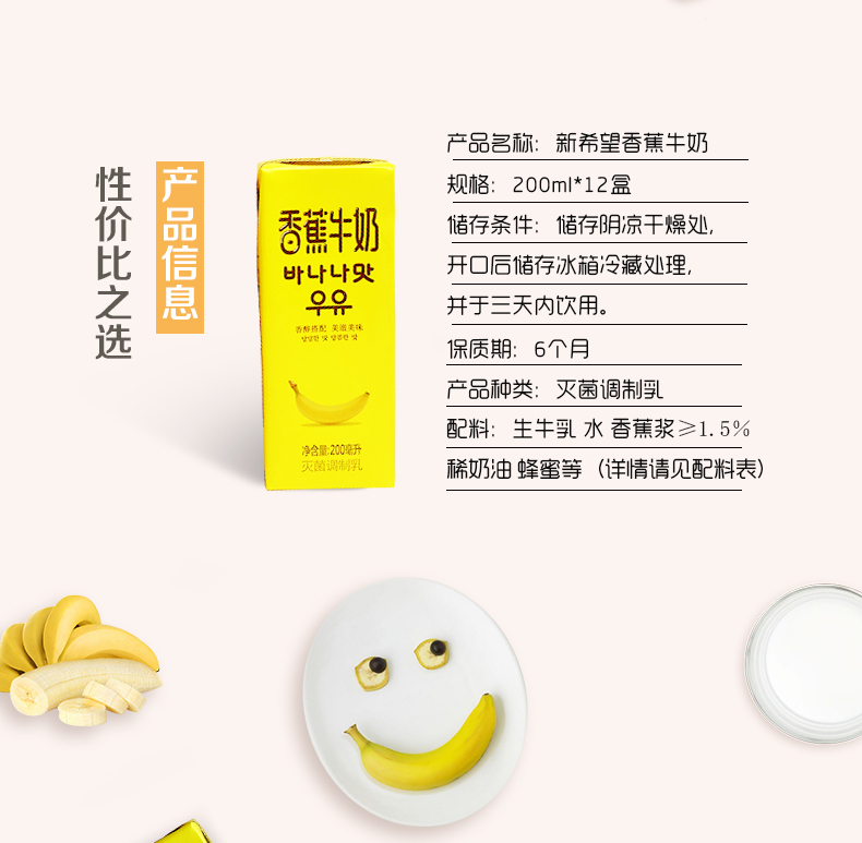 [整箱] 新希望香蕉牛奶200ml*12盒