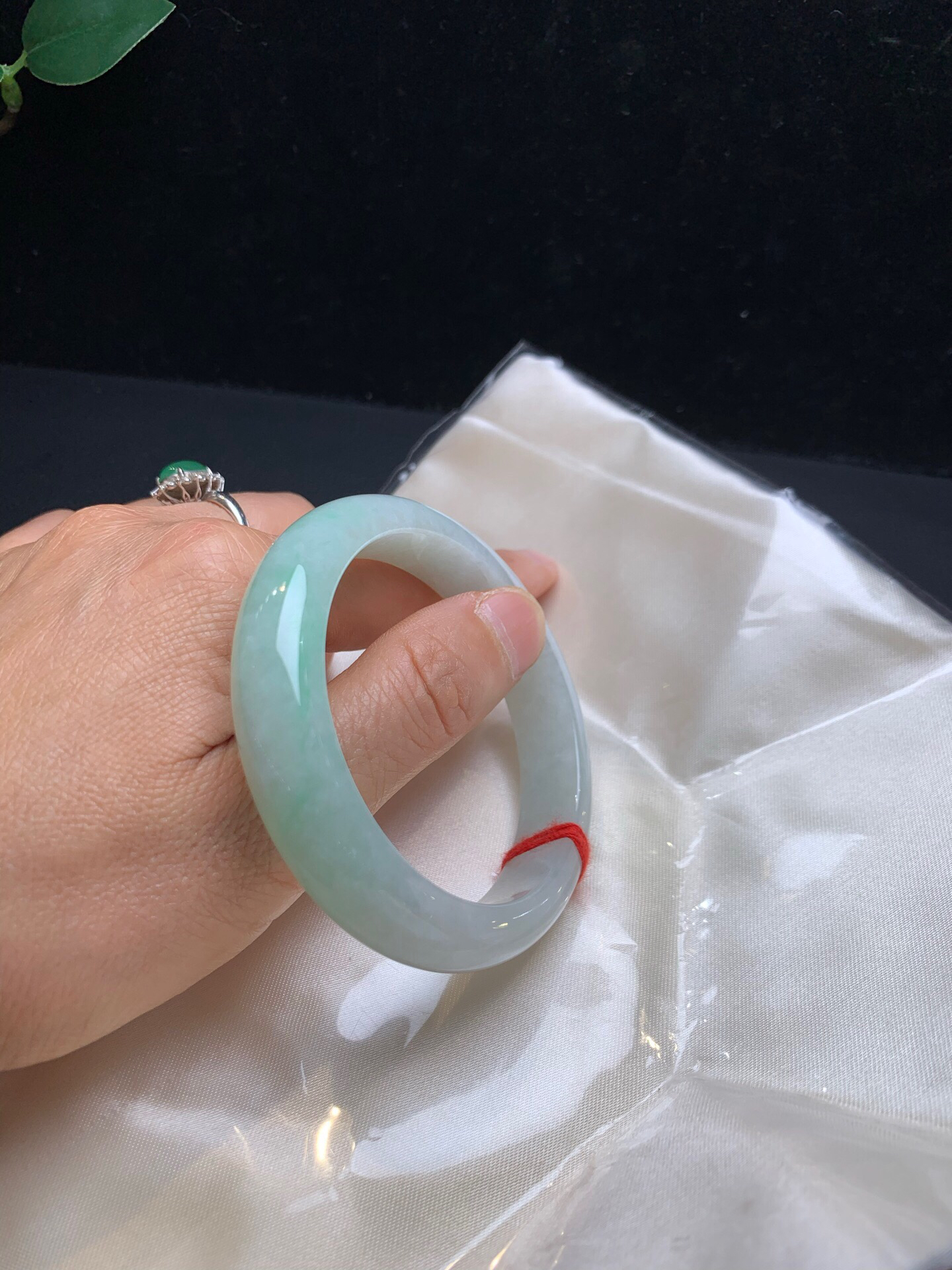 612787,56飘绿手镯,12.7-8mm,一截带绿,清新干净 润润的,无裂纹,超值价💰10800 #优石客珠宝#香玉荟萃