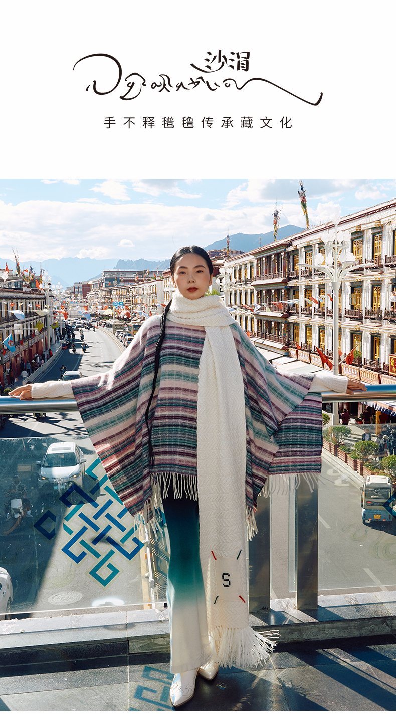 西藏手工氆氇羊绒斗篷 SJF98W715N