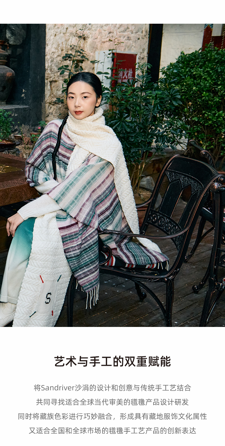 历年在巴黎时装周亮相,享誉世界的艺术羊绒品牌[Sandriver 沙涓]由羊绒布道者郭秀玲女士创立。阿拉善自有牧场纯种羔羊绒,日本国宝设计师小筱顺子,上海自有基地精工细作。承载羊绒情怀,坚持匠人品质。