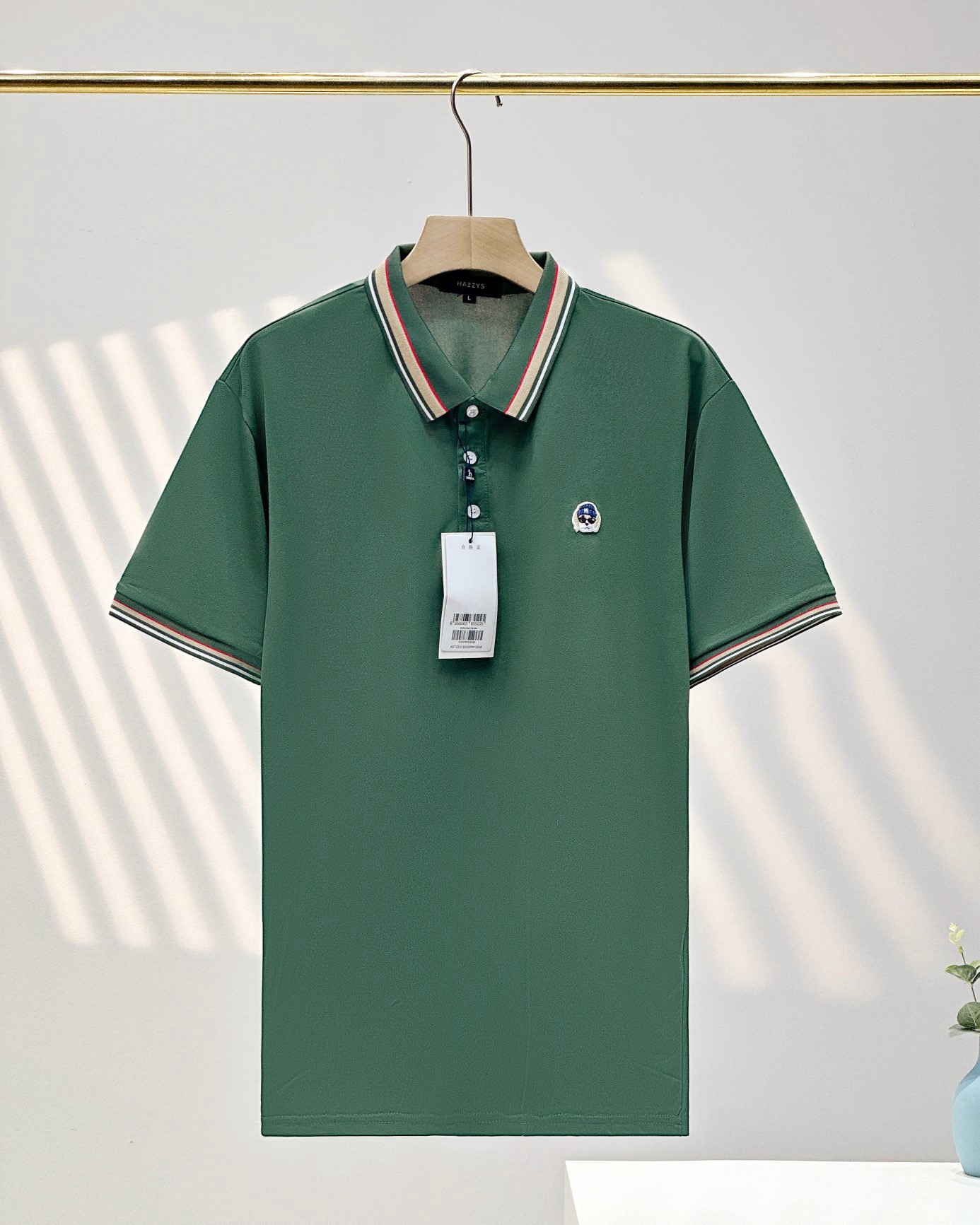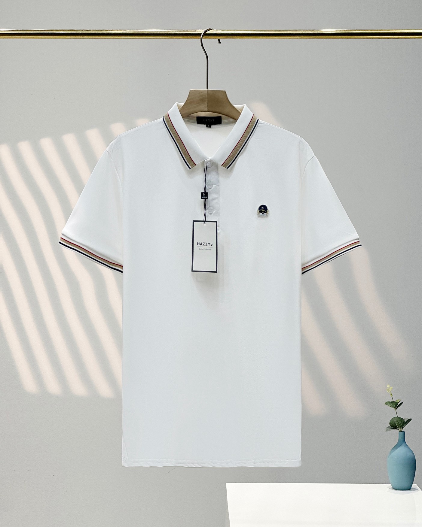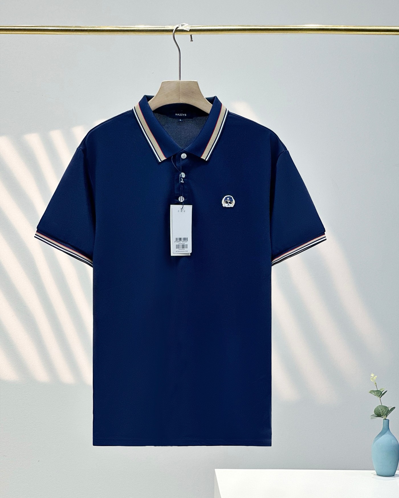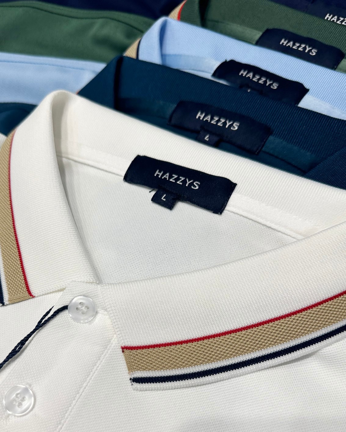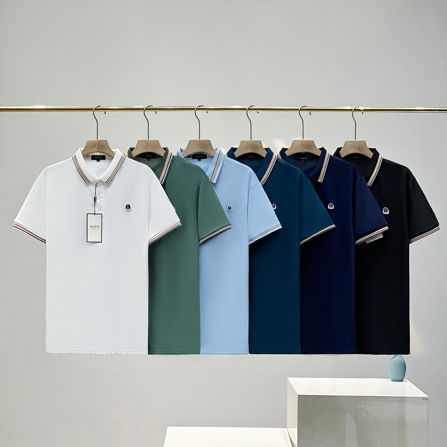HAZZYS/ 哈吉斯polo衫 !2025年新款英伦夏季男装双条间色领POLO衫,这个牌子相信大家并不陌生了,给大家感觉就是绅士感十足的精致品牌!所以对他的印象深刻!全网首发,官网最新款短袖,旗舰店主打款,正宗贸易公司货源,采用鼎级莫代尔纯棉面料,带弹性 上身舒适透气 领口袖口做工规整!胸口狗头精致刺绣一线不连,百分百原货!定制纽扣,市面上是搞不到的,一看便知高贵血统!人手一件的东西,不管你是什么品味,什么要求,什么年龄,足矣搞定您的需求,包您满意!
