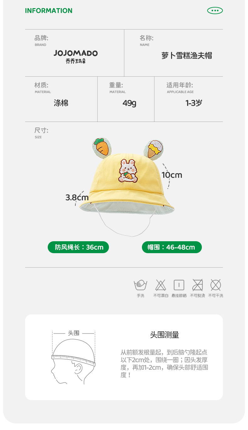 【韩版可爱超萌❗️萝卜雪糕渔夫帽】舒适透气,防晒防紫外线,小熊春秋可爱超萌宝宝渔夫帽子男女儿童百搭防晒遮阳帽夏日父亲节礼物新年礼盒年货礼盒