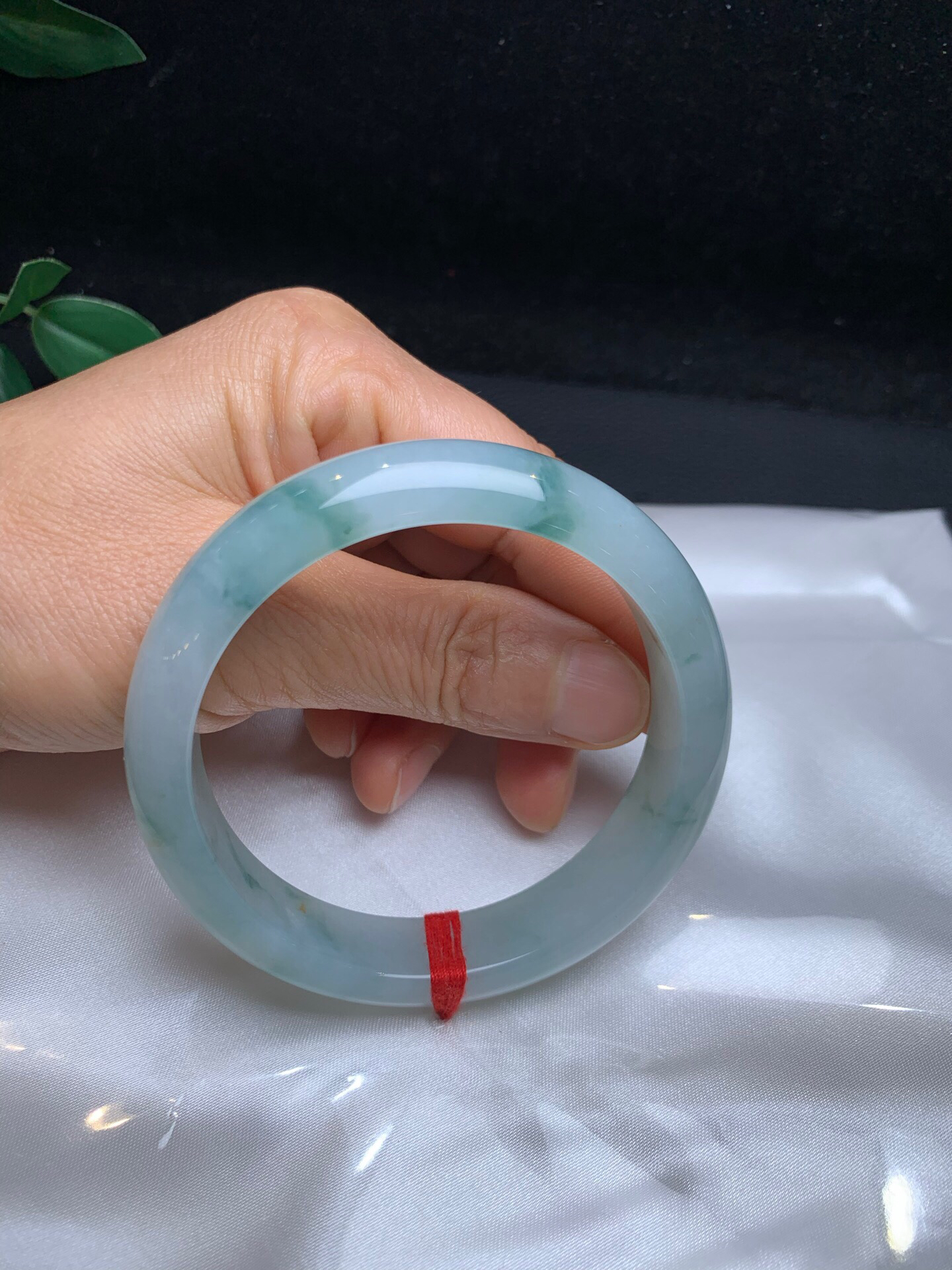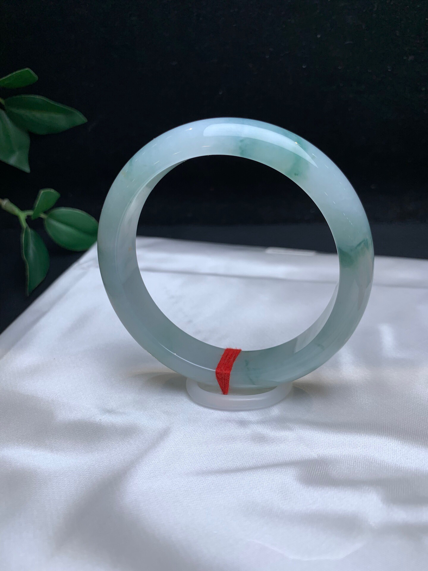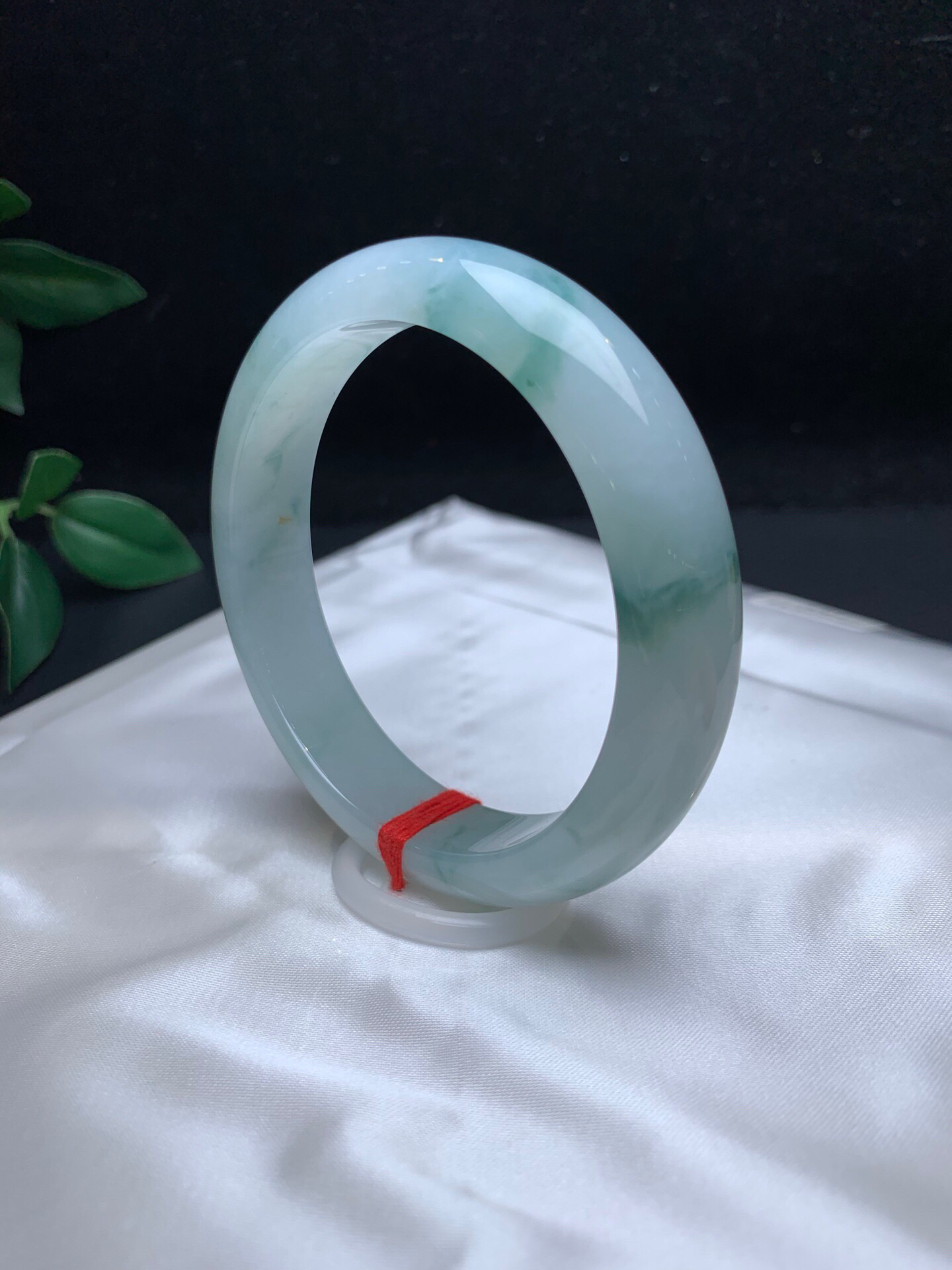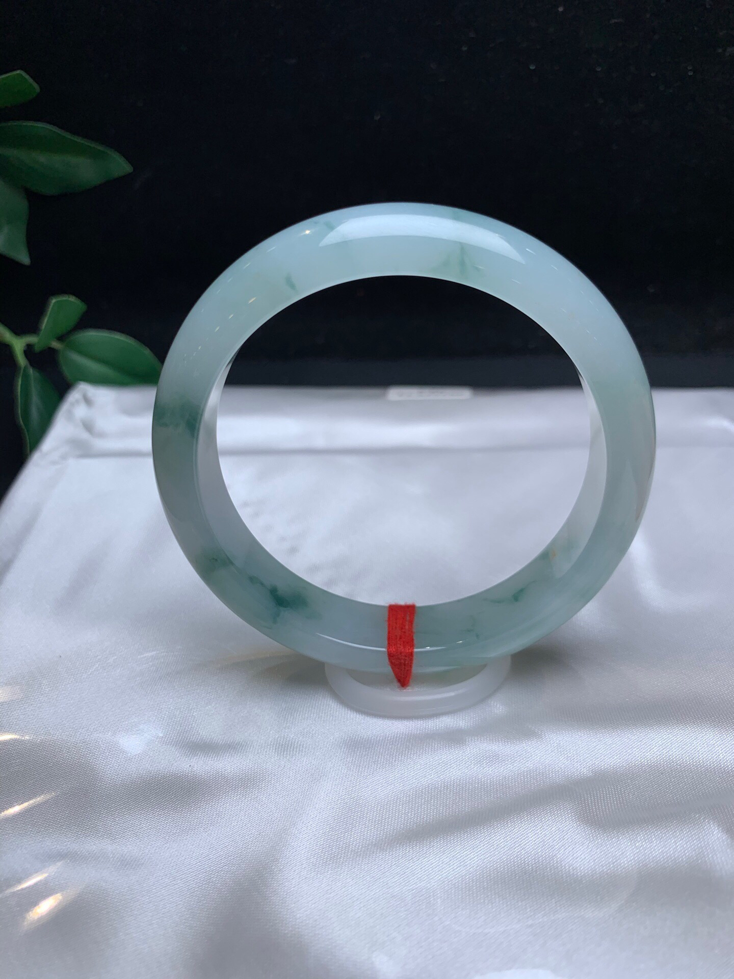 612996,58.5冰飘花手镯,14.3-8.5mm,整条底妆非常细腻干净, 胶胶润润的,飘清新蓝花,清秀完美 。超值价💰45000 #优石客珠宝#香玉荟萃