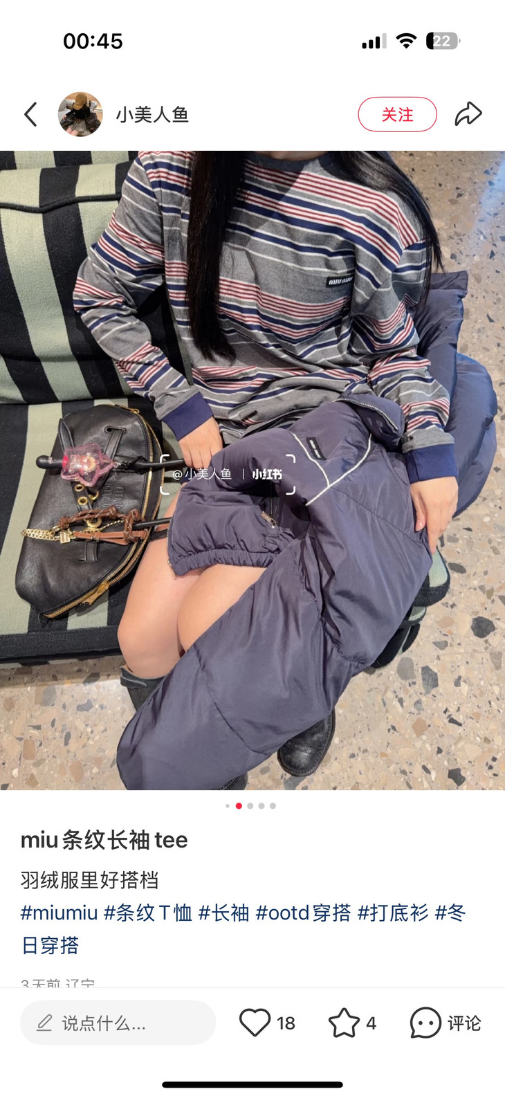 它家条纹应该不用啰嗦吧 这个系列一直都在延续 每次的配色都是不同的 每一次的新配色都很会让人上头 miu是真的nice~