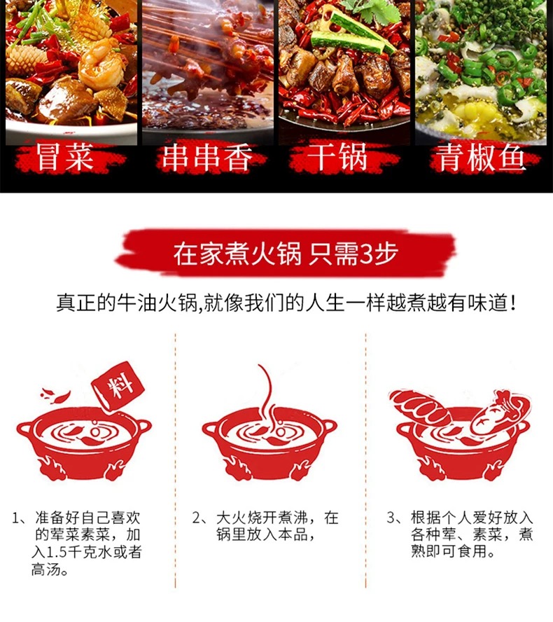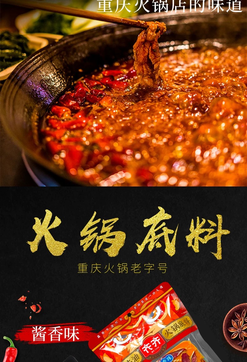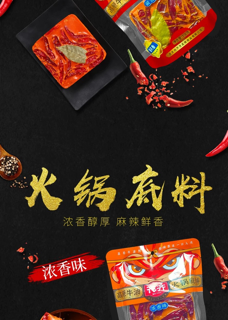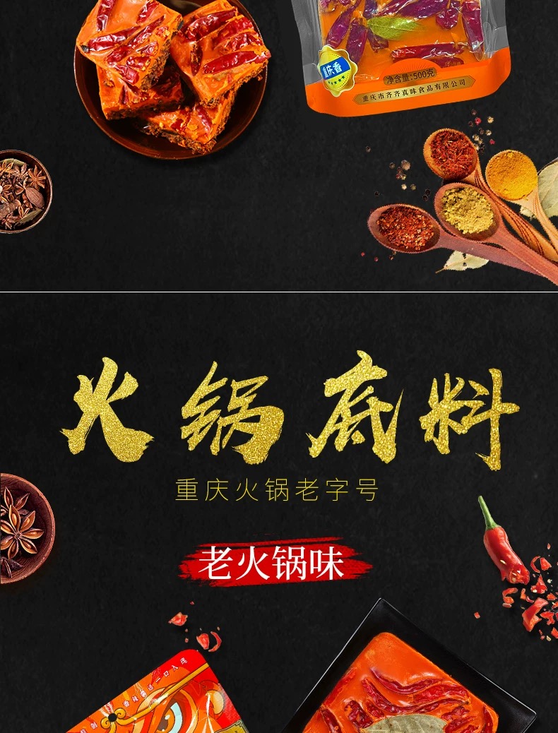 重庆特产 齐齐 火锅底料 500g袋装 老火锅浓香酱香味 麻辣烫调料