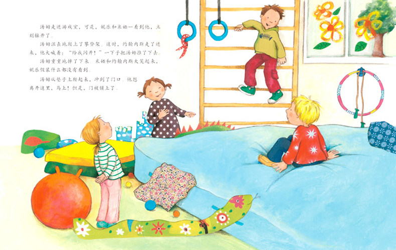 汤姆一点都不想去幼儿园,因为班里新来的“小霸王”总是欺负他,更让他伤心的是自己的好朋友保罗也和其他同学一样假装没有看到,结果“小霸王”对他的欺负和排挤变得变本加利。保罗把这件事告诉老师以后,老师用一个“边缘人”的游戏巧妙地化解了班里这场危机,也消除了排挤的行为。书的*后有“写给父母的话”,指导家长可以为孩子做些什么。