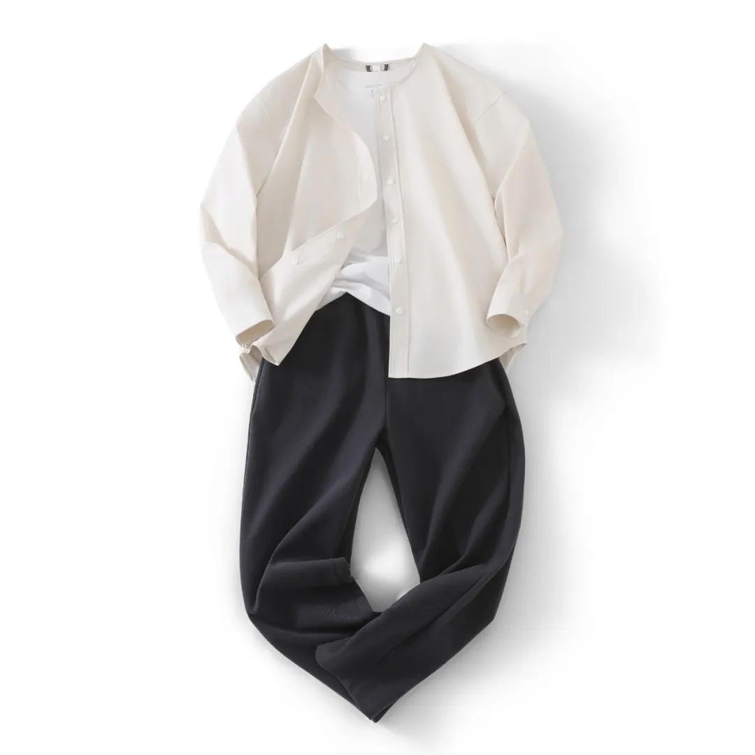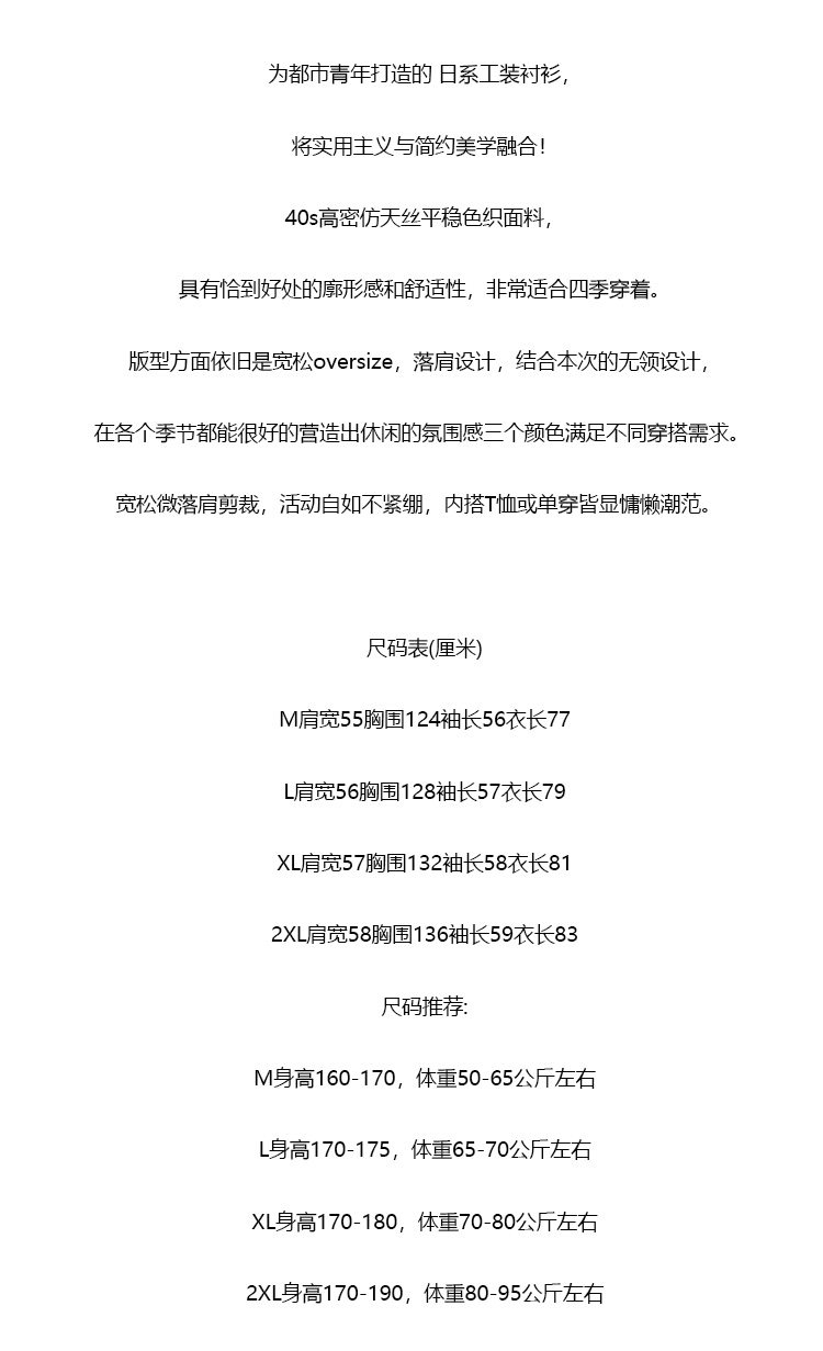 【yz-2519】春夏男子休闲无领工装长袖衬衫!!