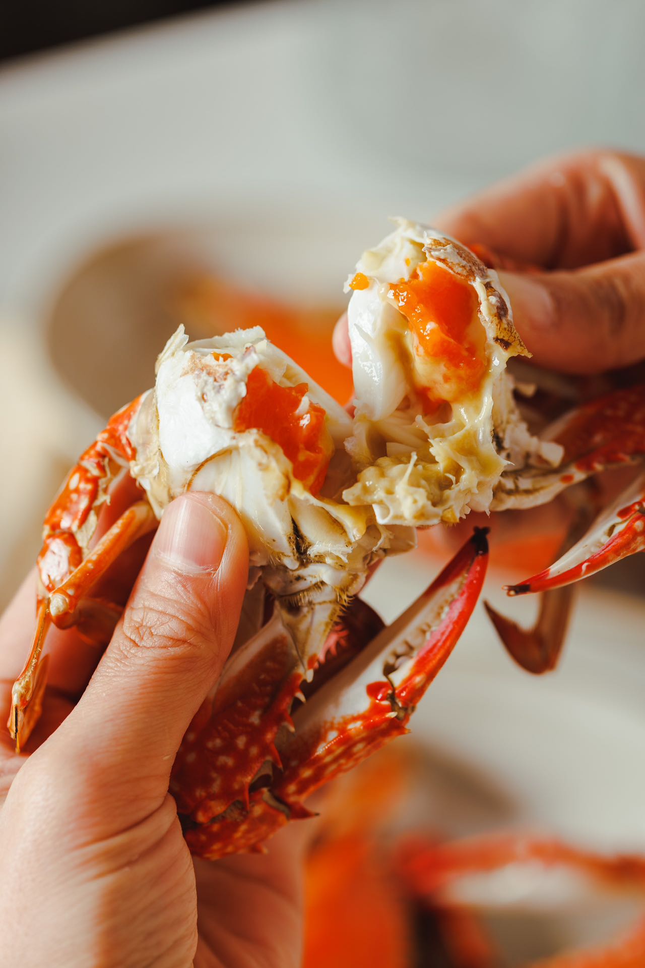 打开一只蟹都要感叹,这膏真的膏香夹杂着蟹肉香,让人忍不住马上要送入嘴里,蟹肉的鲜甜在舌尖,红膏的膏香在齿间萦绕,肉和膏在嘴里愉快的咀嚼,让人觉得人间值得,谁也不能阻止我干饭😋😋