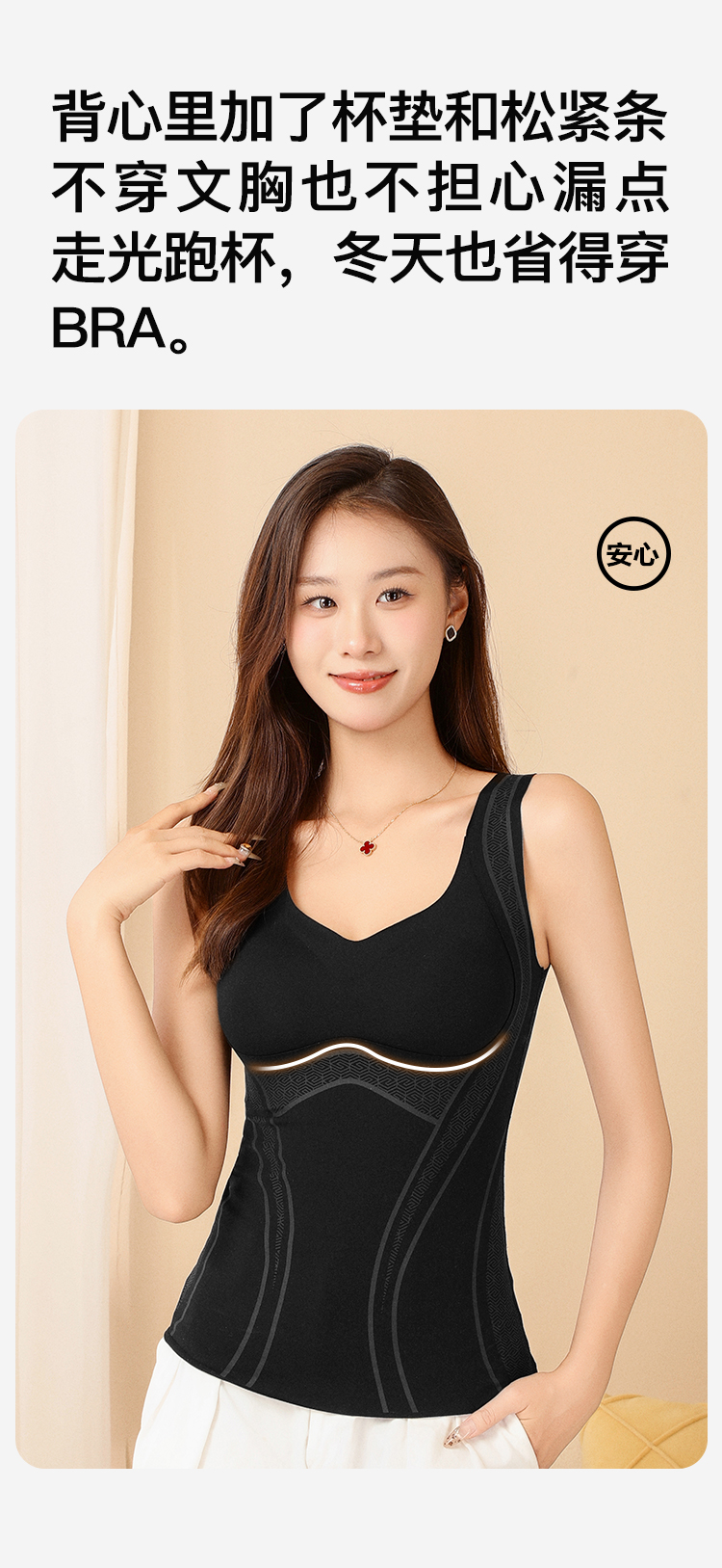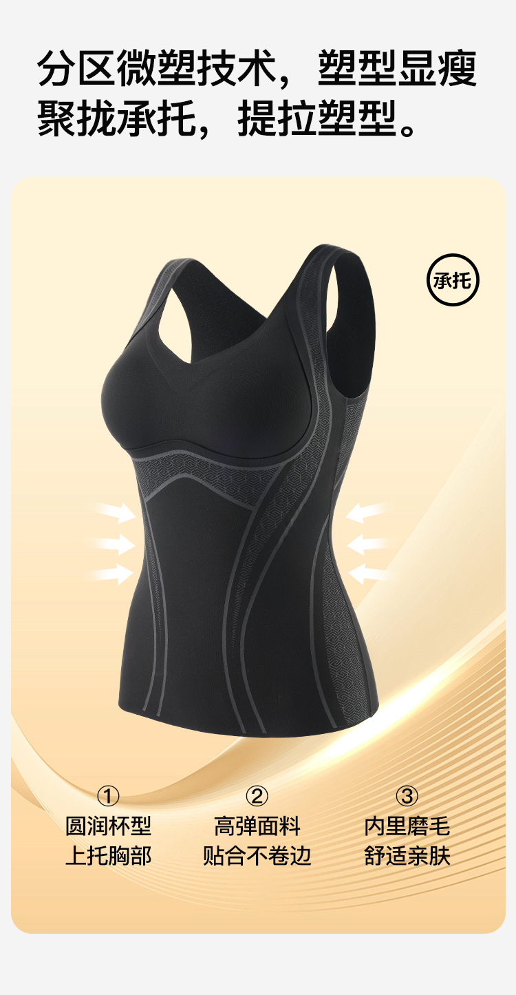 【带胸垫背心】秋冬女士保暖上衣含蚕丝润肤塑型显瘦修身蓄热保暖塑形体雕衣