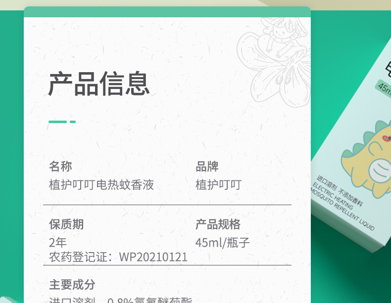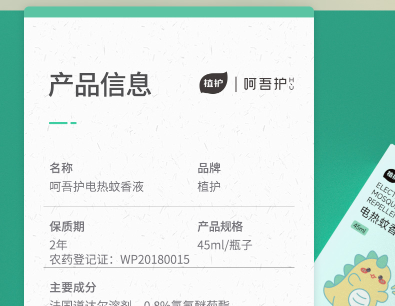 植护插电热蚊香液无味补充装驱蚊虫专研防蚊器水室内用