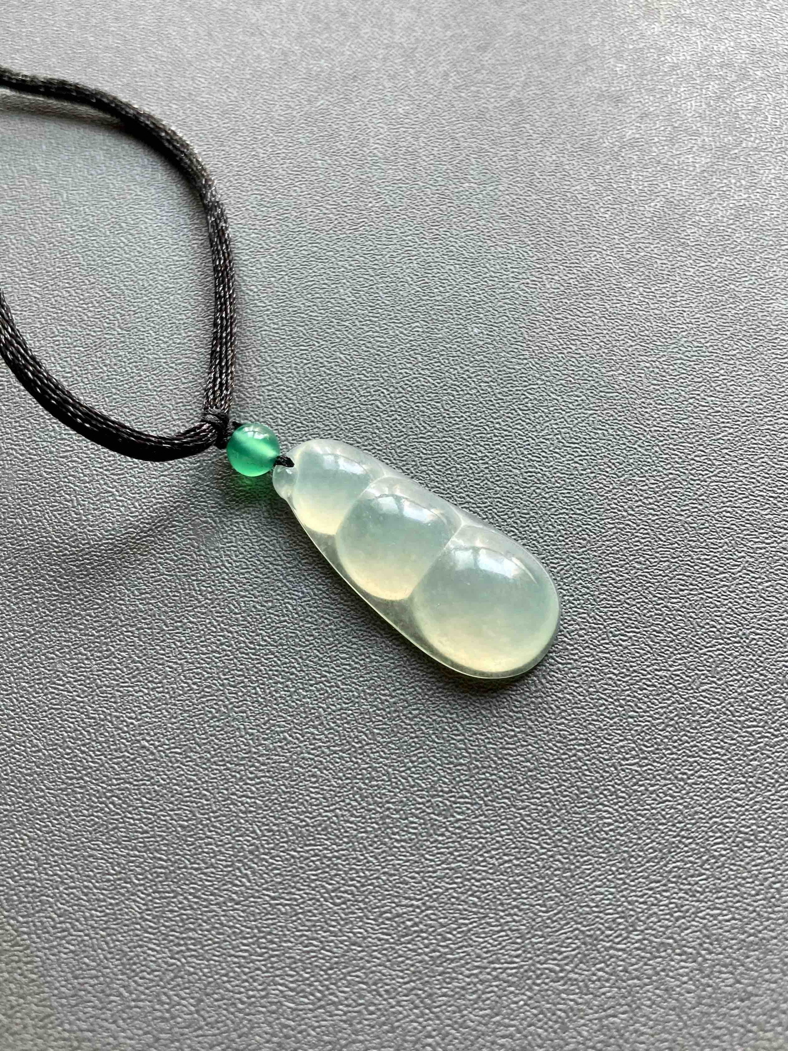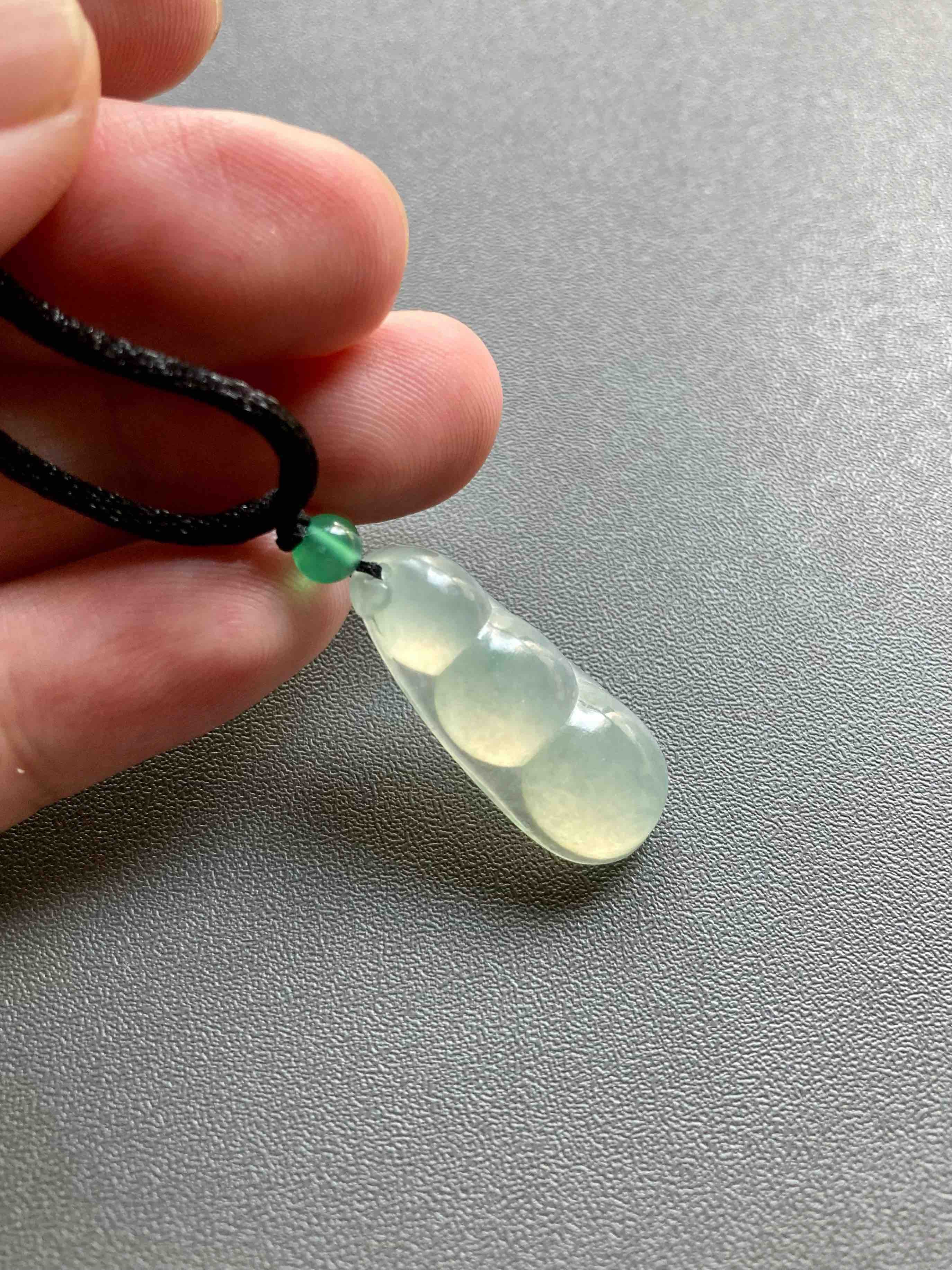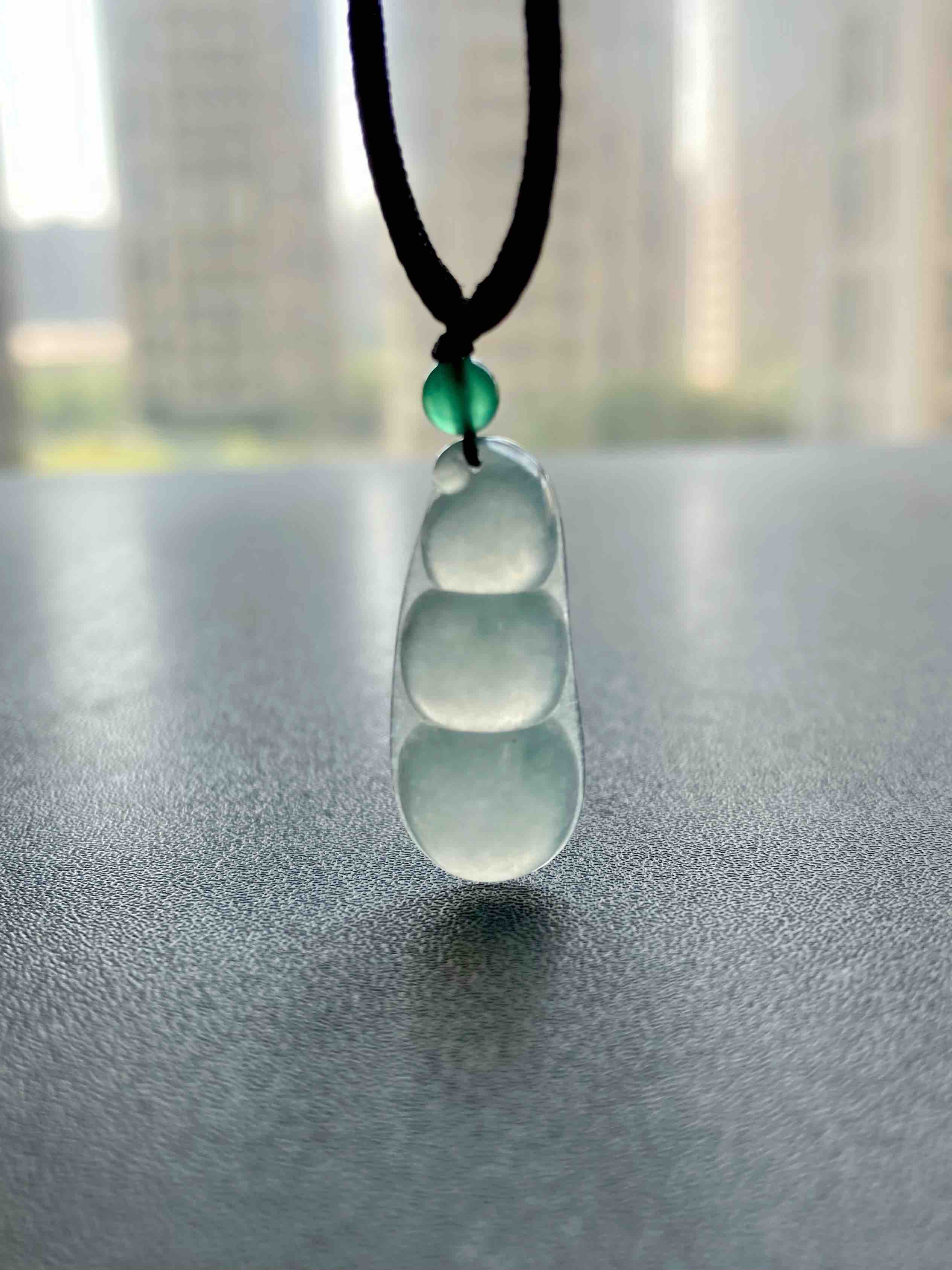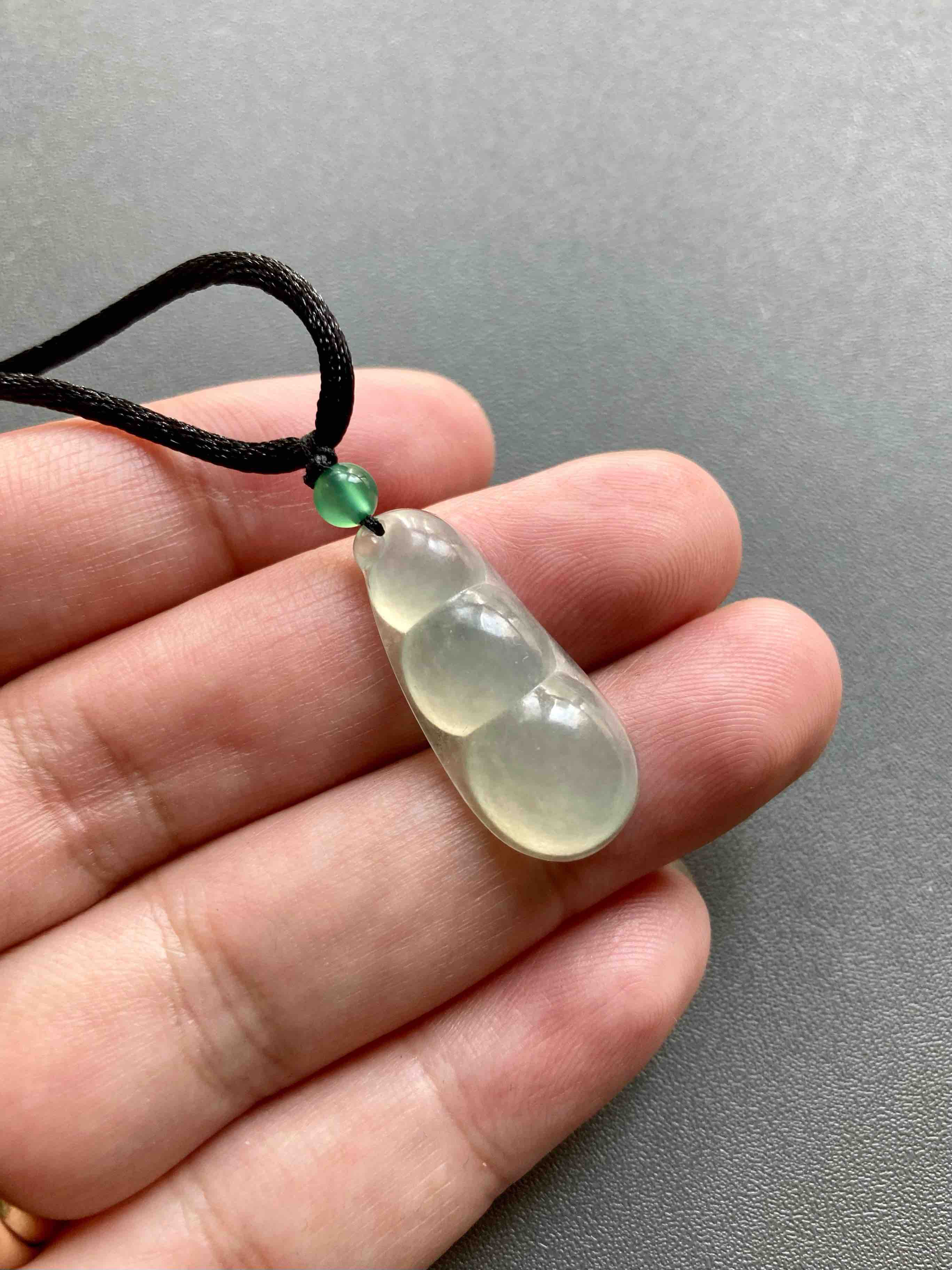 冰种飘花翡翠福豆,26.5×11.6×5.3mm,种水太漂亮了,晶莹剔透起荧光,四季豆寓意四季平安,三颗豆粒代表连中三元,决定福豆价格高低最重要的是厚度,薄的要比厚的便宜很多,千元价位别人都是薄薄的,我们这么厚实,品质秒杀,错过后悔抓紧哦