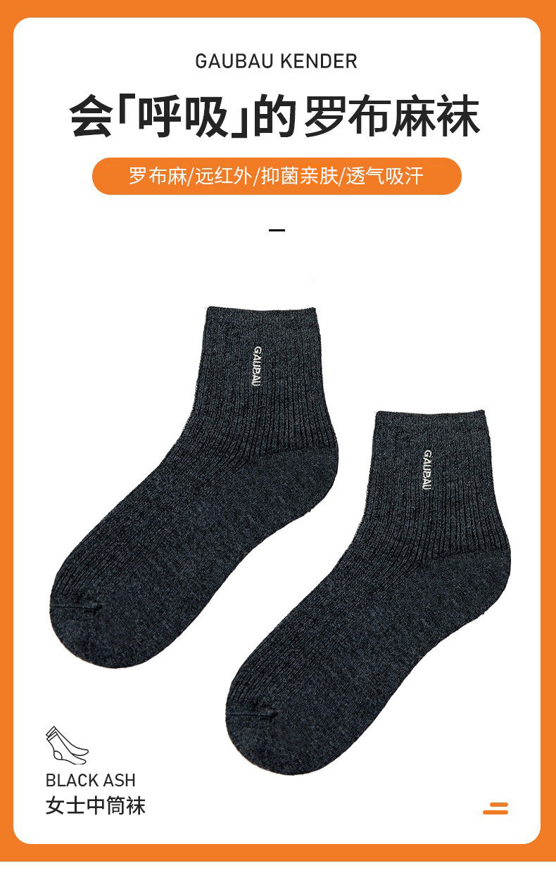 女士长袜秋冬罗布麻防臭吸汗透气中筒袜