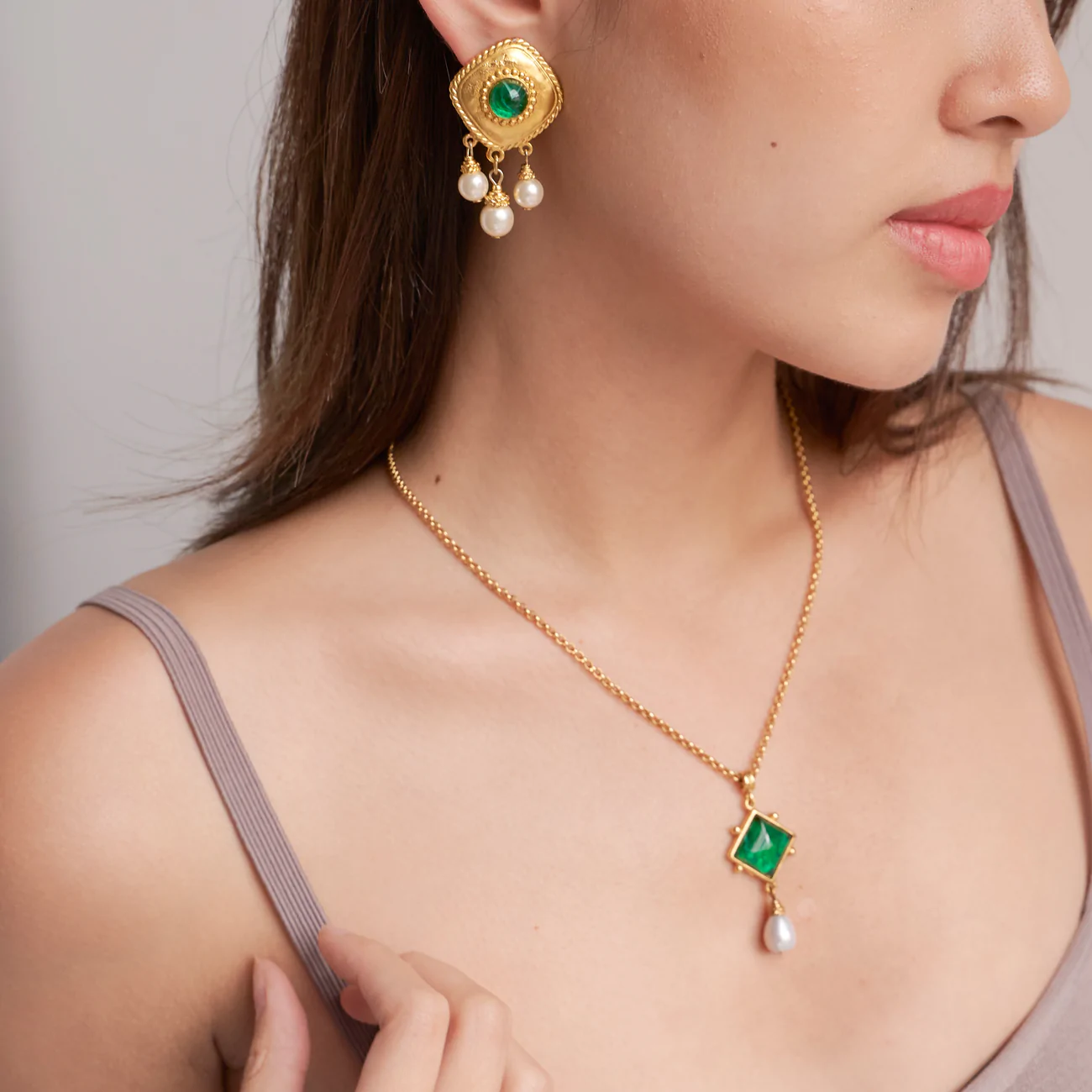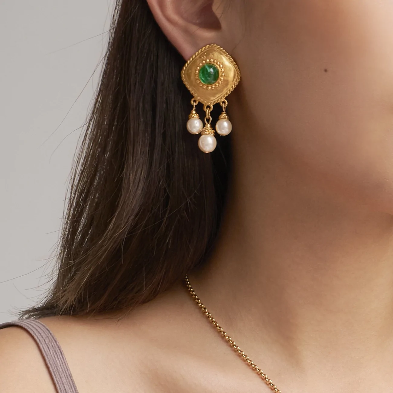 北京仓|Ben Amun-Ellery-绿色玻璃 珍珠 耳夹(无需耳洞)[美国设计师]