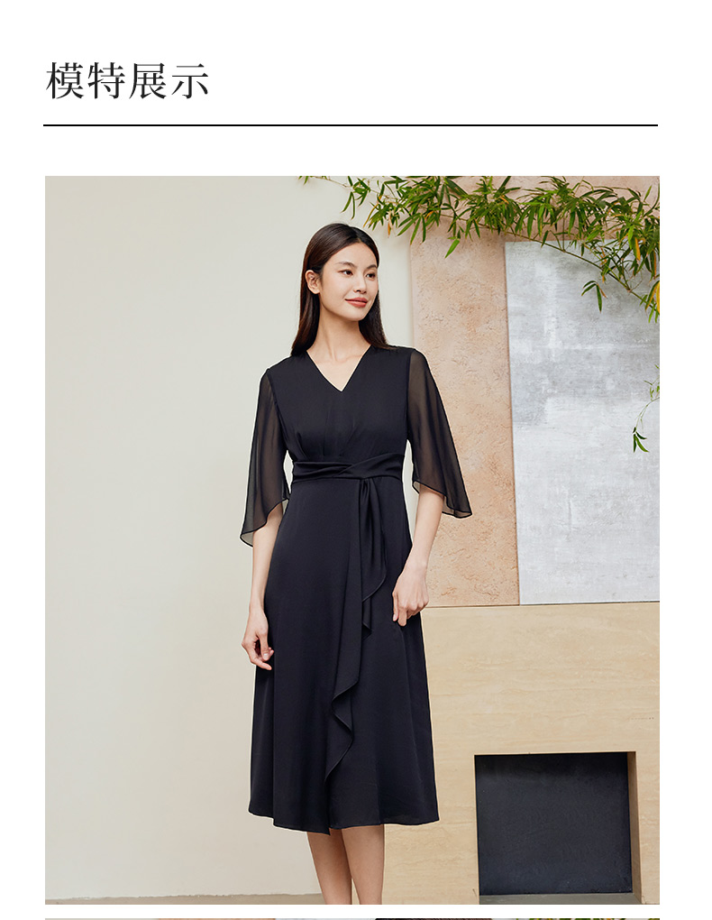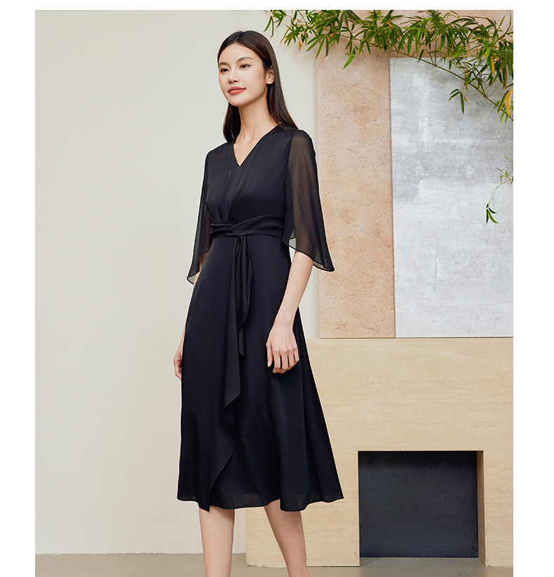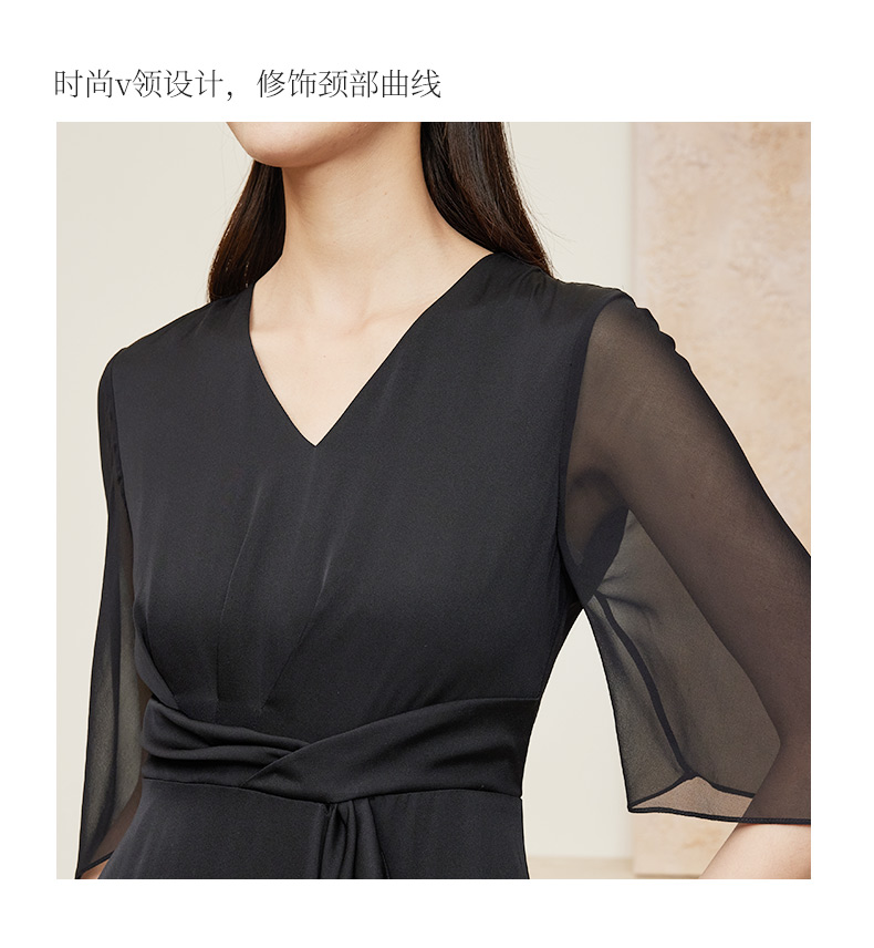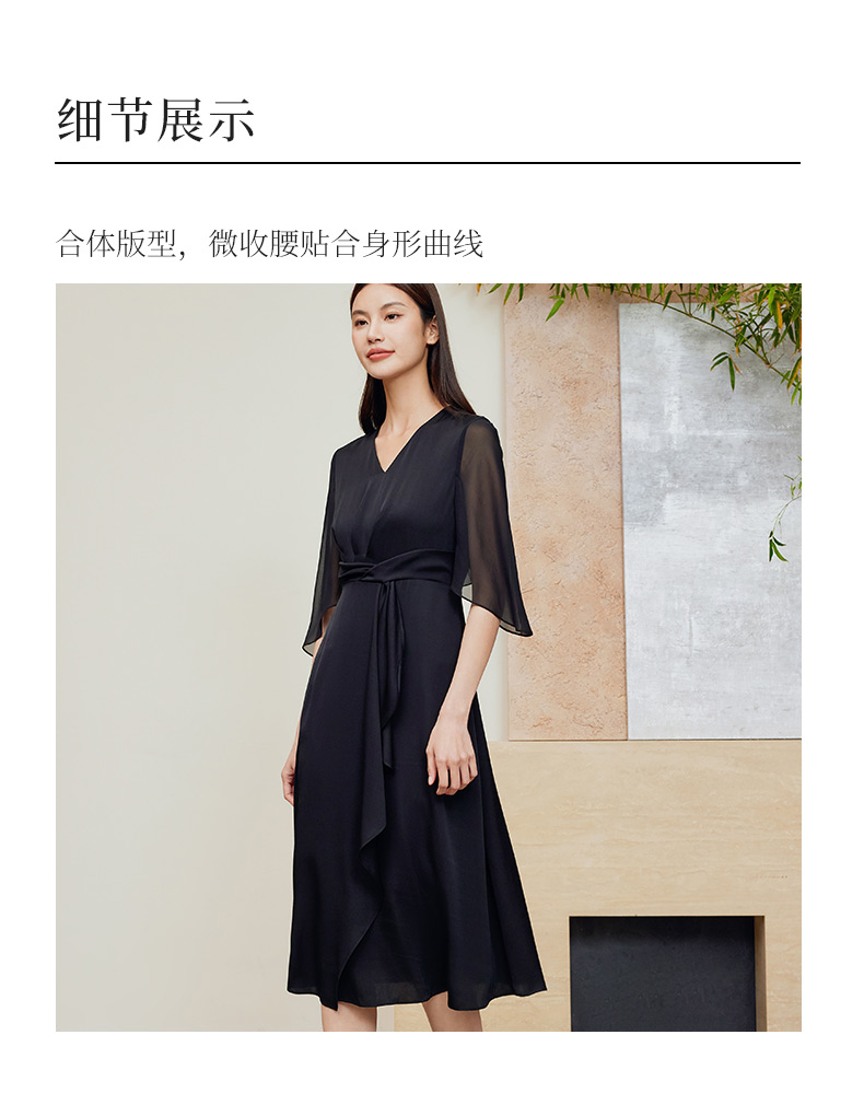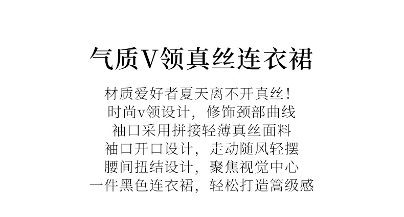 玳莎真丝V领连衣裙2024年夏季新款轻奢气质收腰显瘦桑蚕丝小黑裙 EB35303