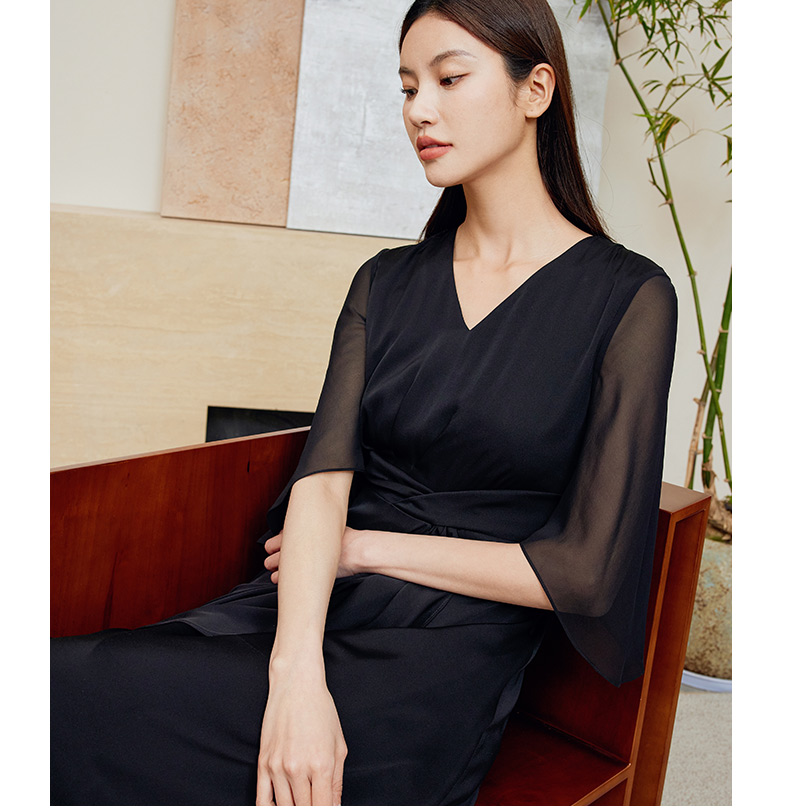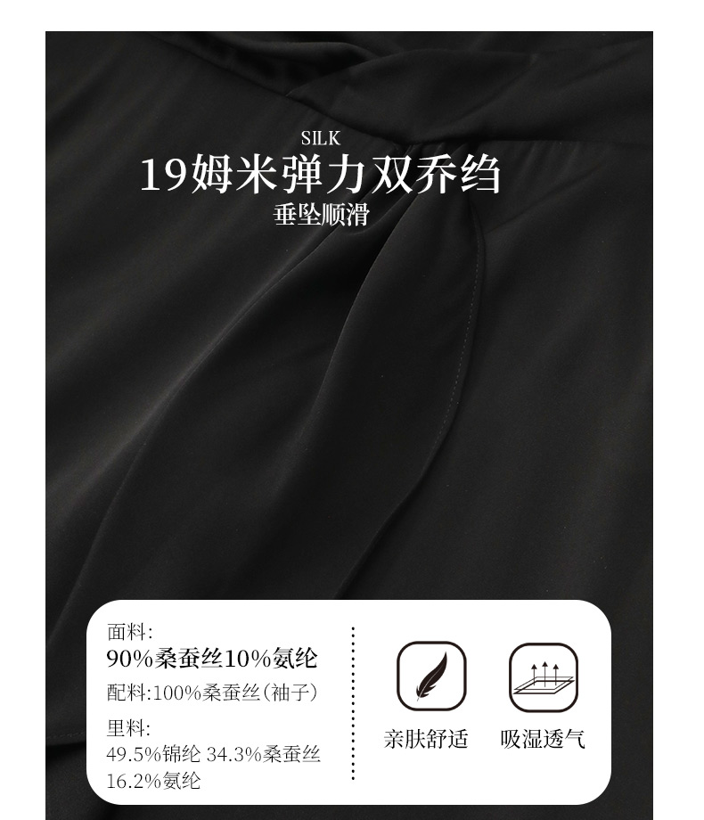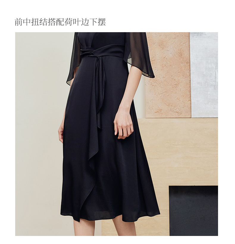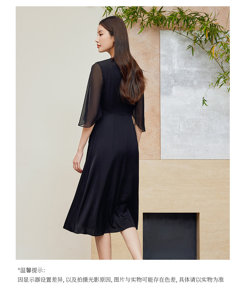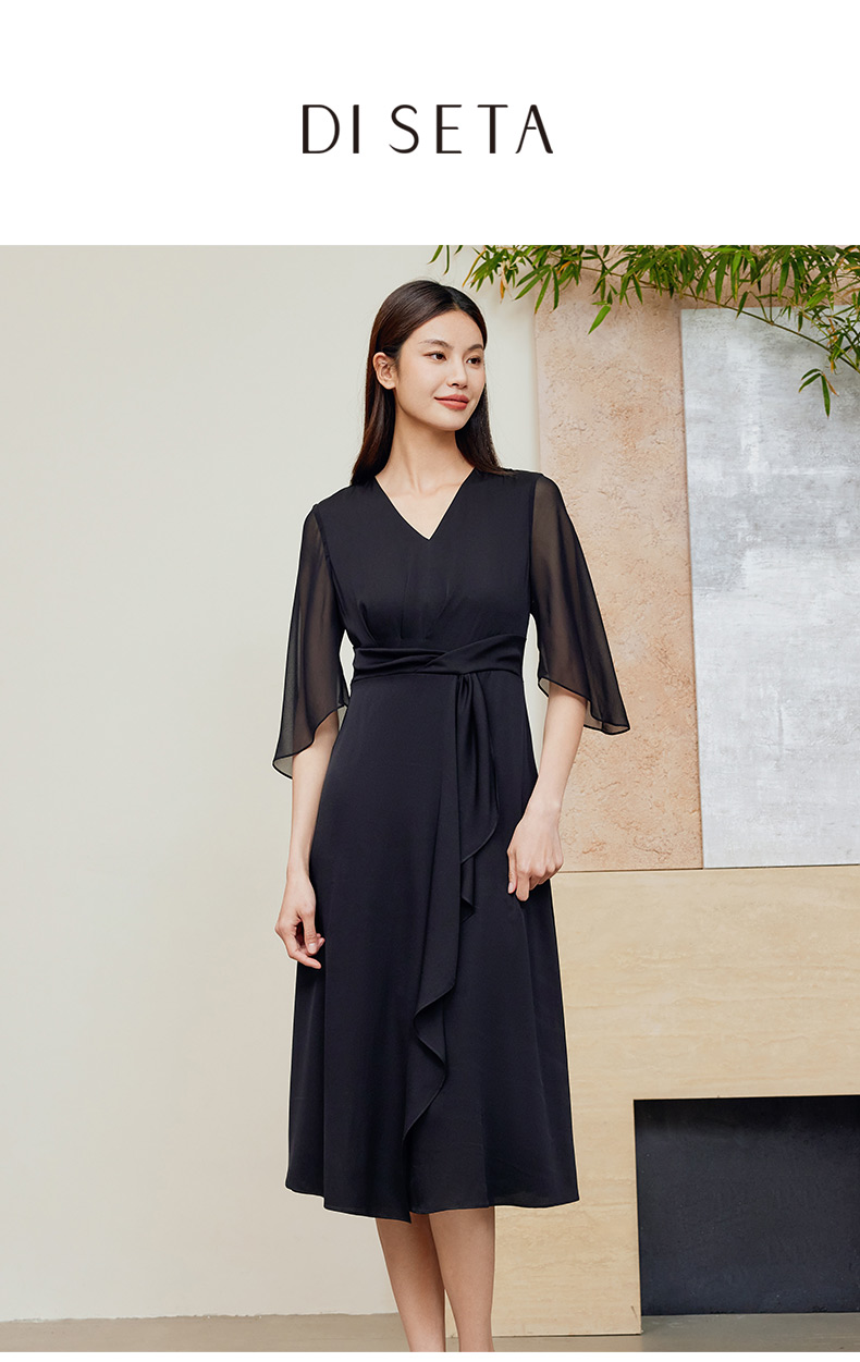 玳莎真丝V领连衣裙2024年夏季新款轻奢气质收腰显瘦桑蚕丝小黑裙 EB35303