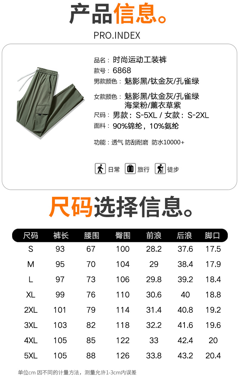 【任选两件69.9元 单拍不发】Schenvega工装机能户外防风防泼水工装裤E5-6868