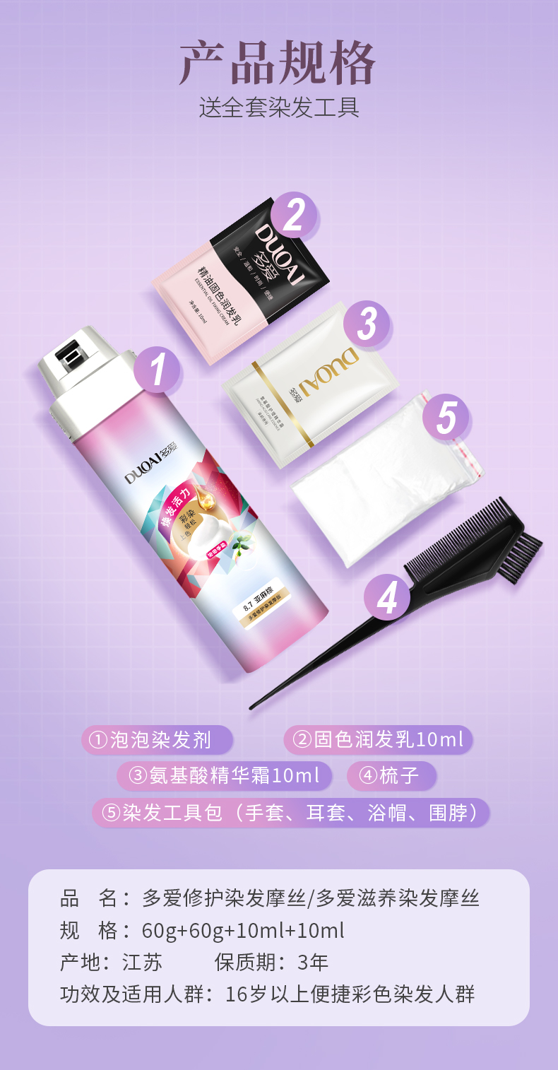 【 下单两盒三盒送价值49元固色洗发水一瓶】多爱修护时尚泡泡染发剂120g