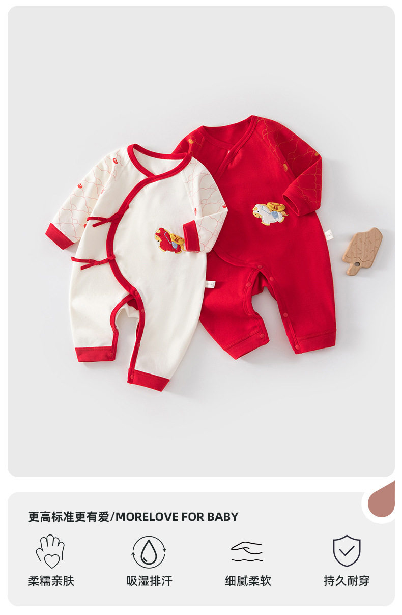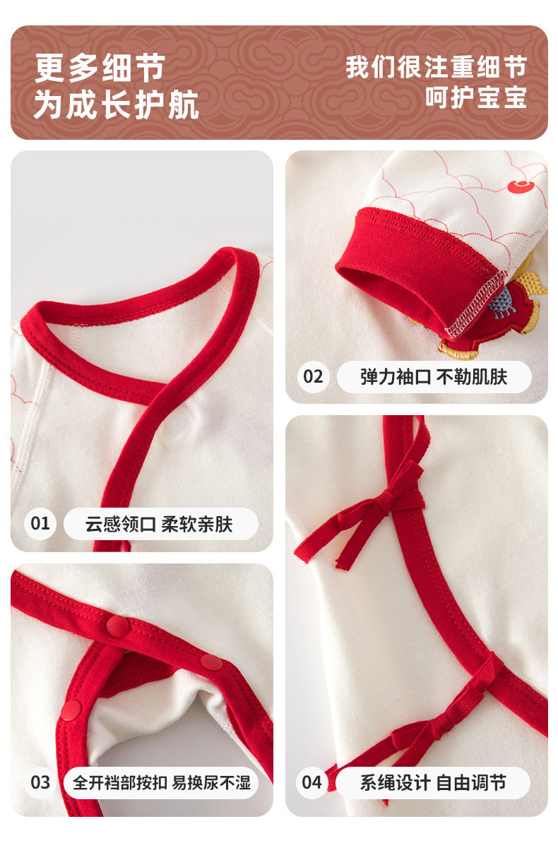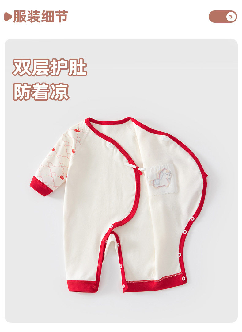 春秋季婴儿衣服新生儿连体衣男女宝宝长袖爬服蝴蝶睡衣四季款斜襟