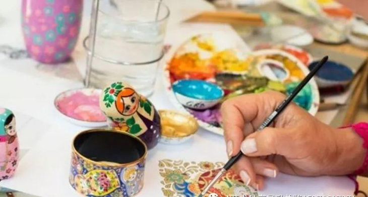 瓷胎珐琅的制作过程,用天然矿石调和的釉水,先第一步勾勒出线条,基本成型后,在根据不同的色块进行珐琅着色,层层递进,色块的碰撞拼接成不同的色彩。