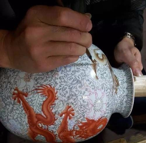 然后待其釉面干透后,进行窑烧,使其珐琅发色,成滴胶状。因以其独特的多彩颜色,和复杂的线条,色彩的填充,每个环节需入微,特别考验工匠,如一个环节出错,那导致的是整件瓷器的失败,即为次品。