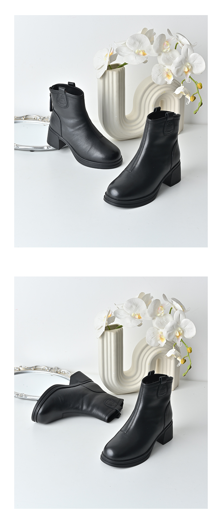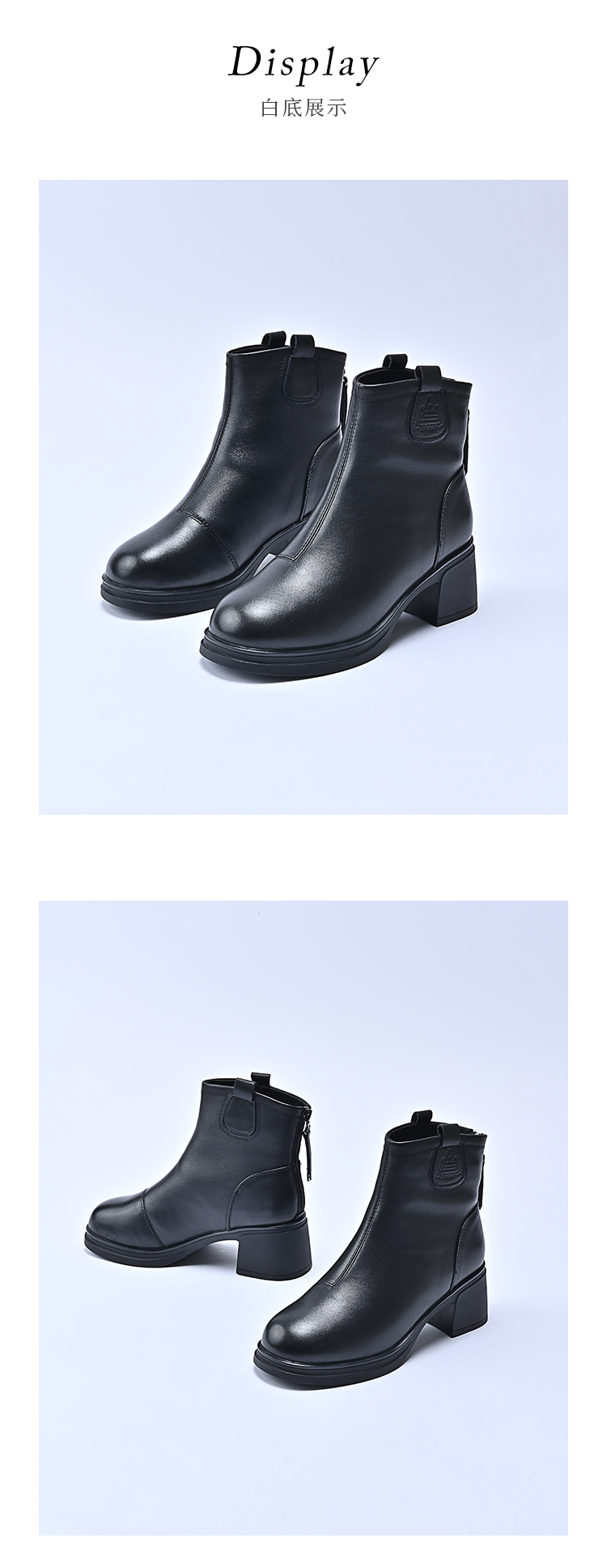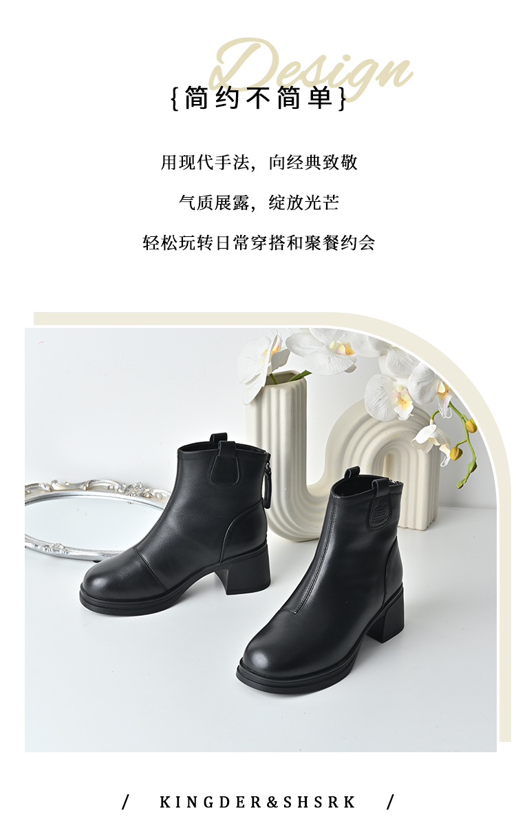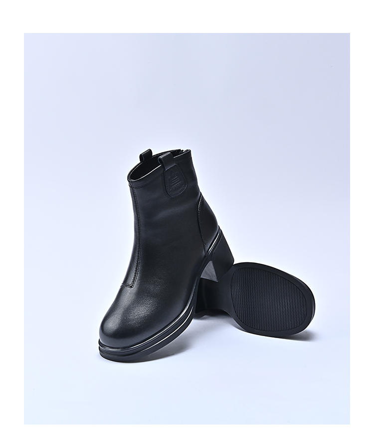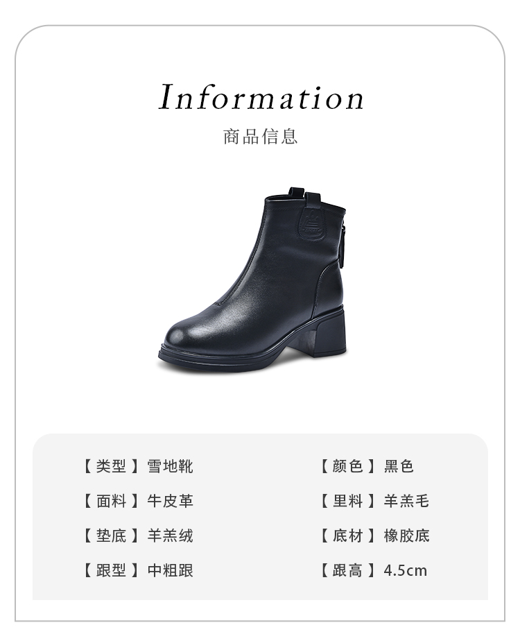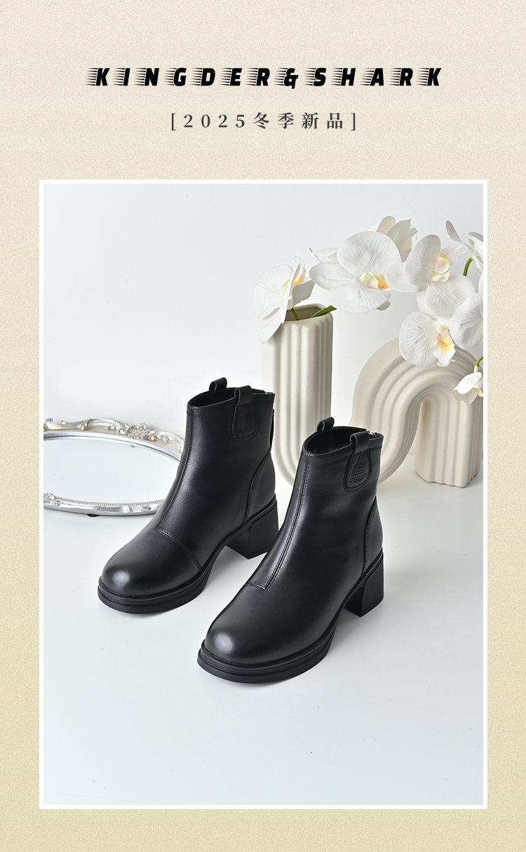 经典鲨2025冬专柜新品牛皮革黑色圆头加绒加厚雪地靴短靴女KW289-558021