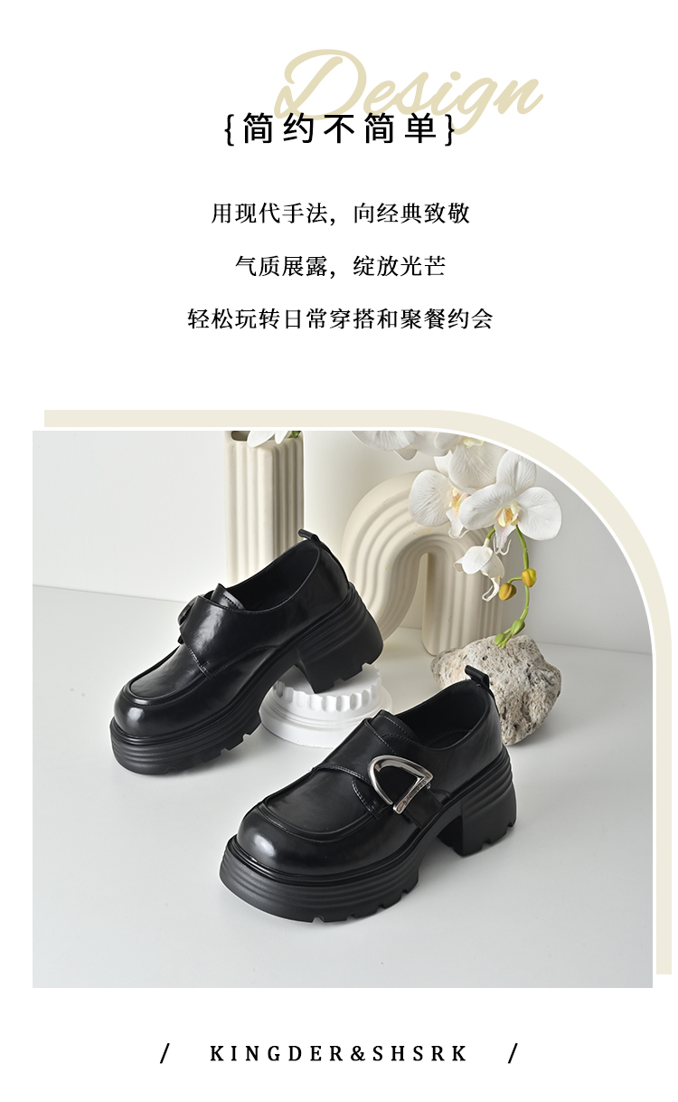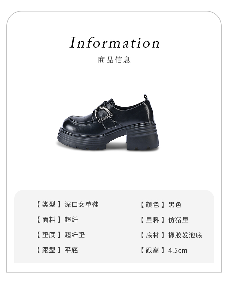 经典鲨2026春专柜新品百搭黑色4.5cm中粗跟通勤乐福鞋单鞋女KW230-617051