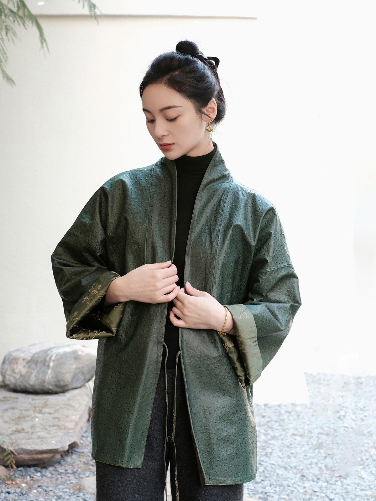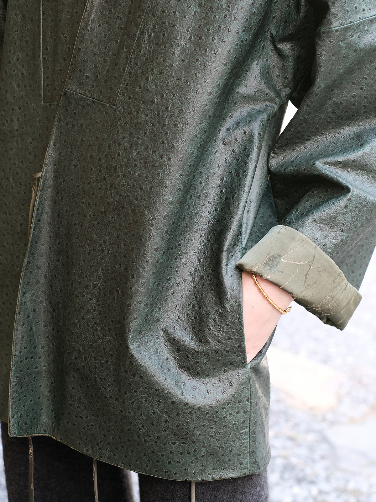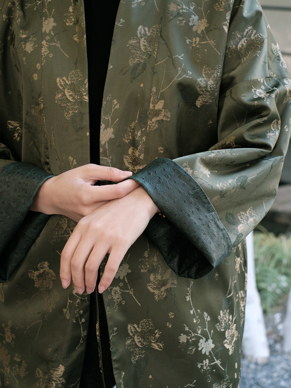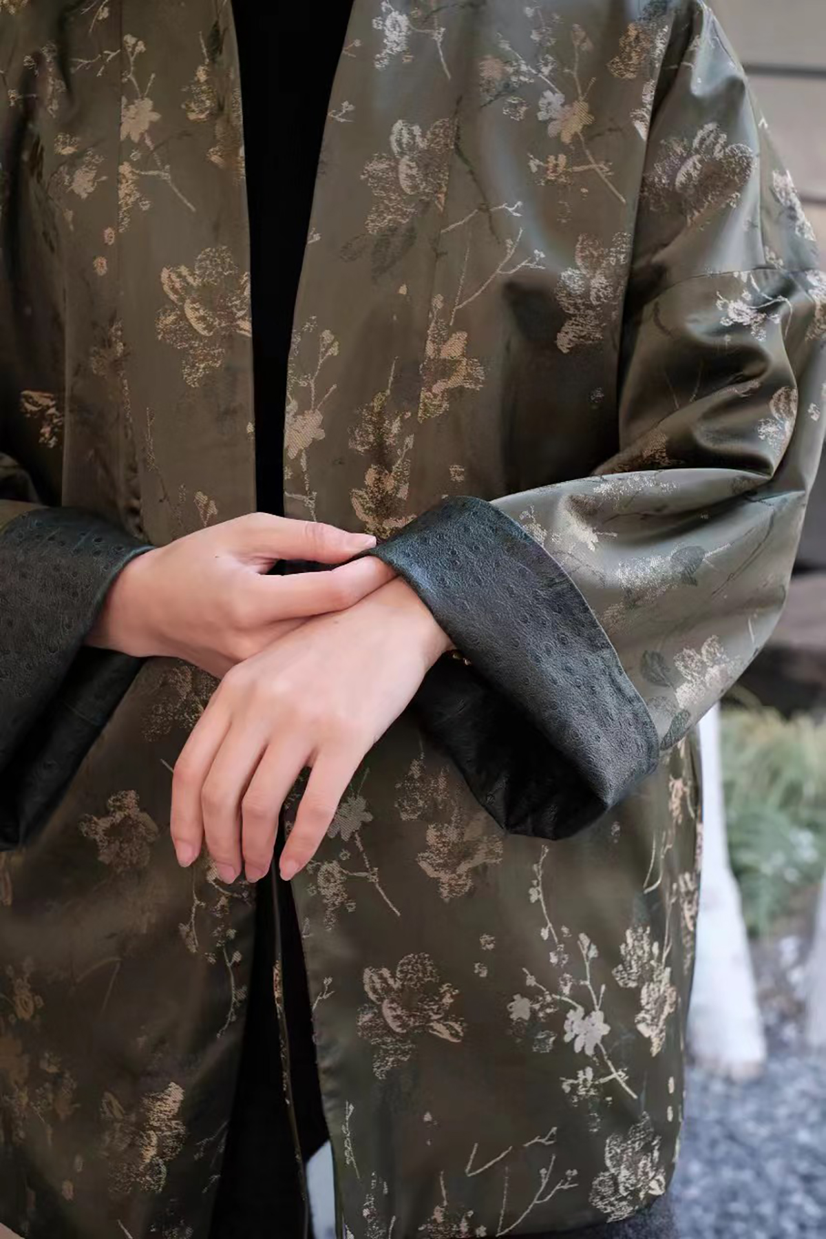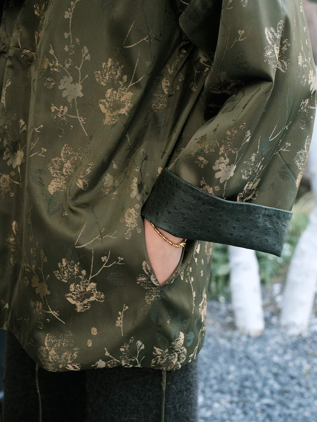 盛唐牡丹 |重缎真丝宋锦对襟双面穿皮衣