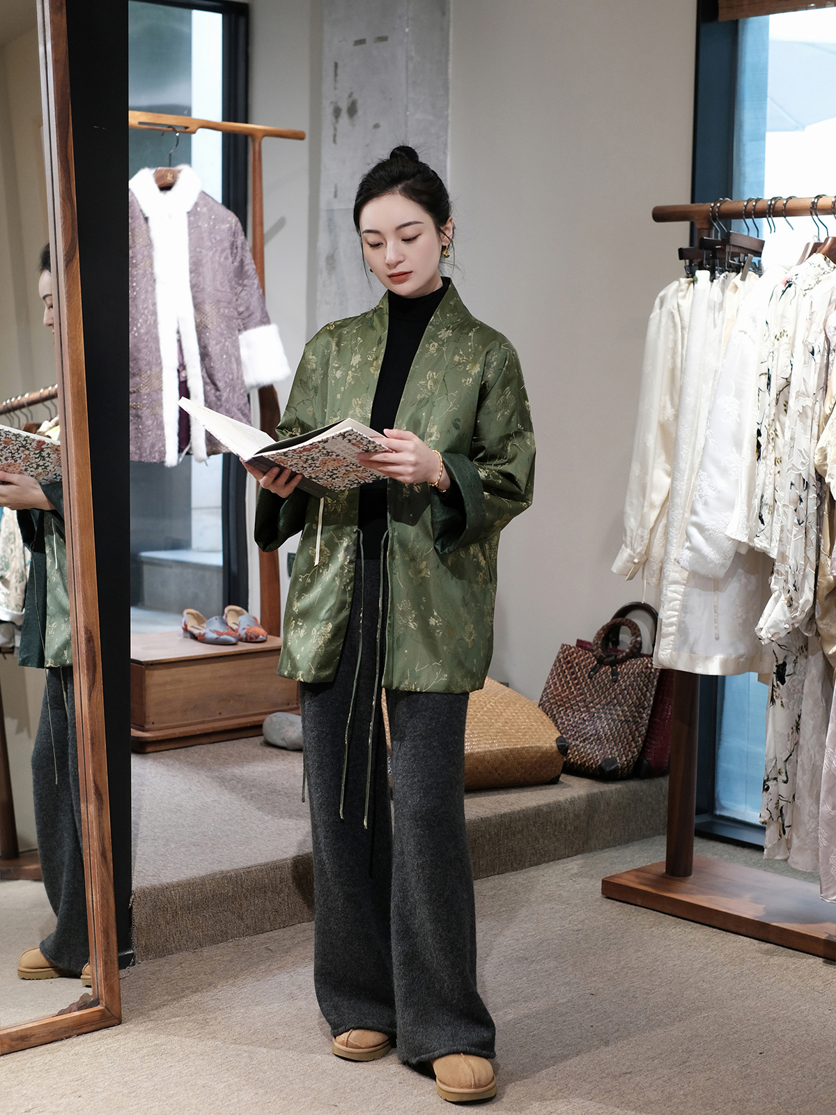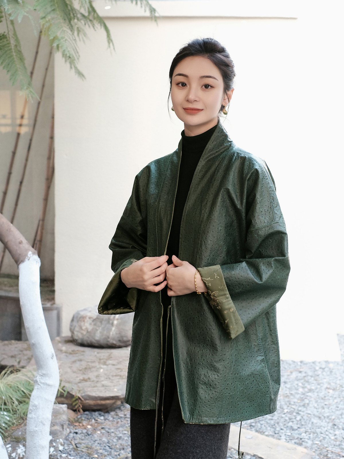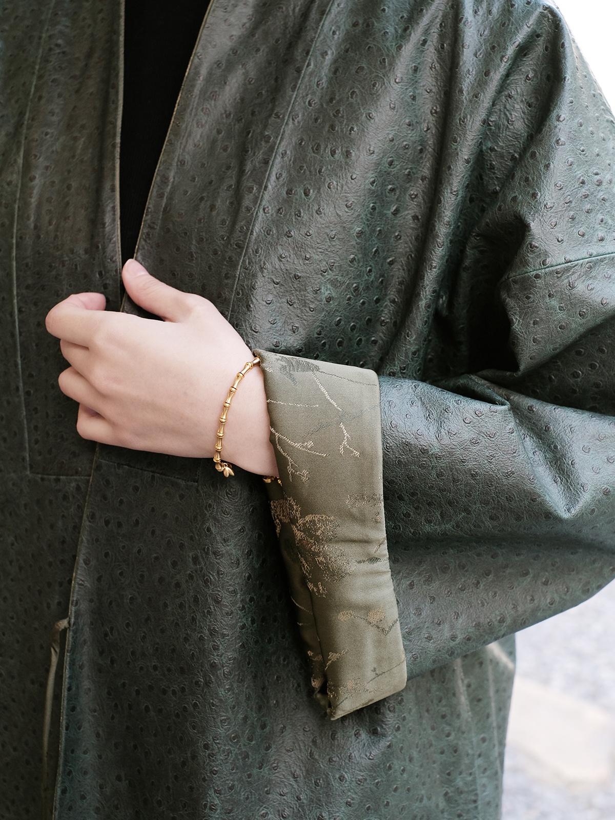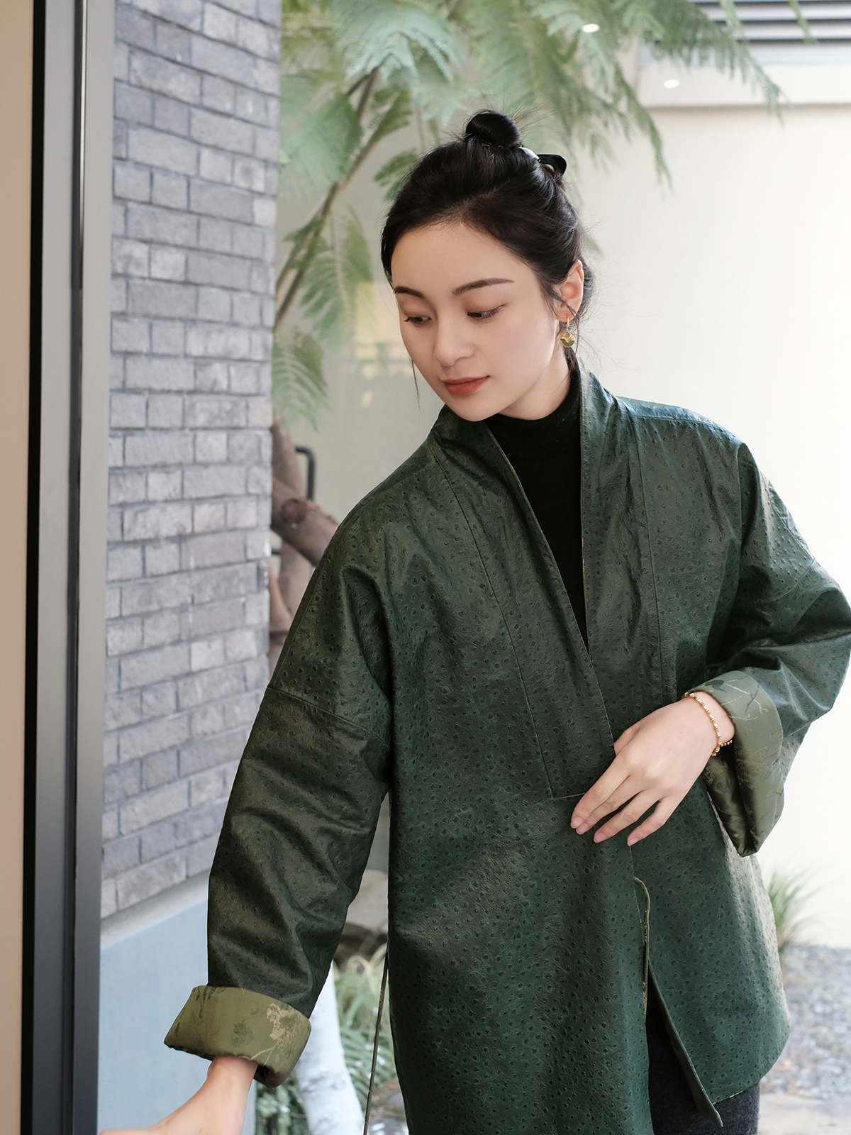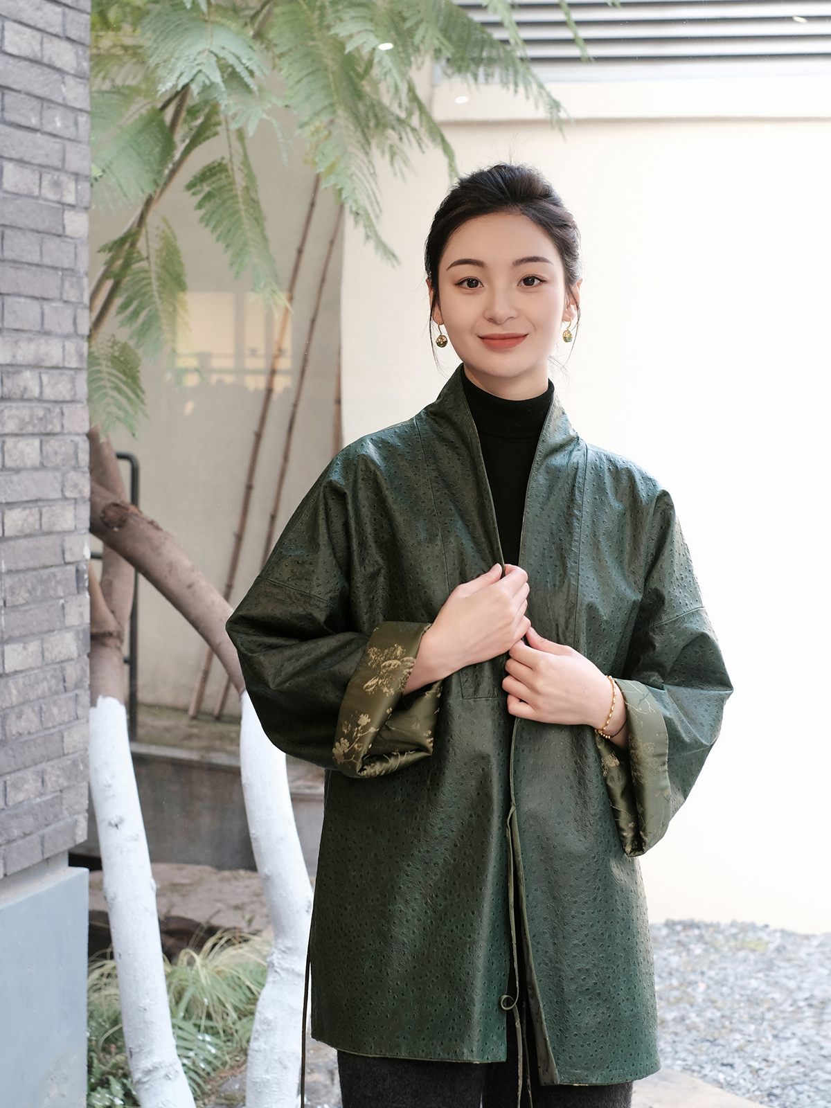 盛唐牡丹 |重缎真丝宋锦对襟双面穿皮衣