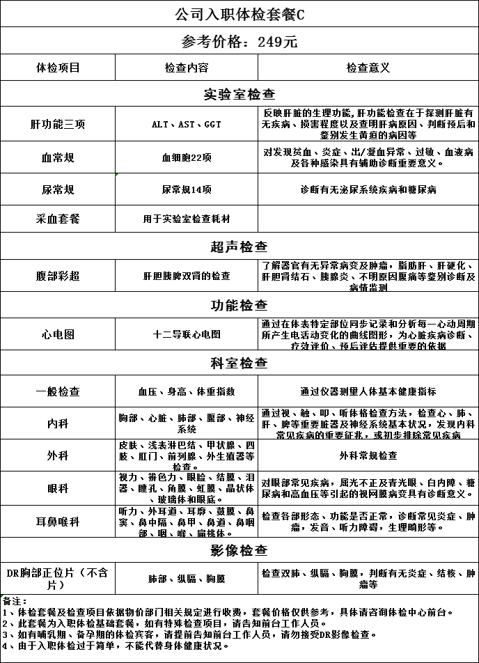 【含早餐】企业入职体检C(不可单独加项或减项,介意勿拍)