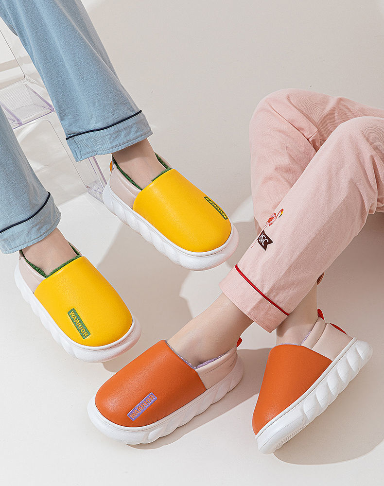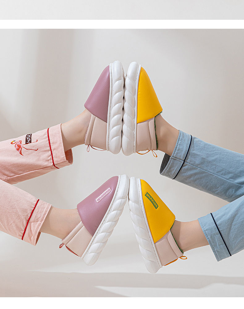 女男冬季加绒棉鞋休闲保暖家居防滑防水室内外两穿包跟棉拖